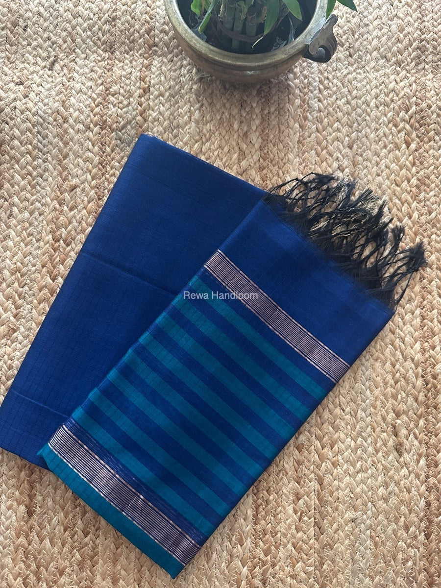 Maheshwari Blue-Rama Green Zari Border Dress Material MSBS017