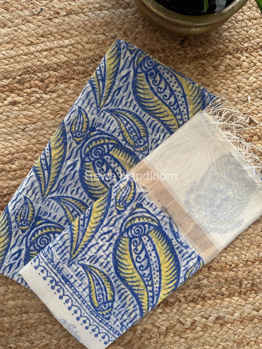 Maheshwari Blue-White Handblock Print Top-Dupatta HBS0138