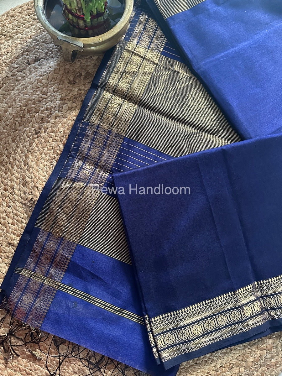 Wrap yourself in the timeless charm of Maheshwari Blue Zari Skirt Saree ZS081 Meticulously woven, this 6.3 meters of sheer elegance comes with an 80cm blouse piece, seamlessly blending tradition with modernity. Crafted by Skilled Weavers of Rewa, the Maheshwari silk cotton blend guarantees a delightful fusion of comfort and style.
