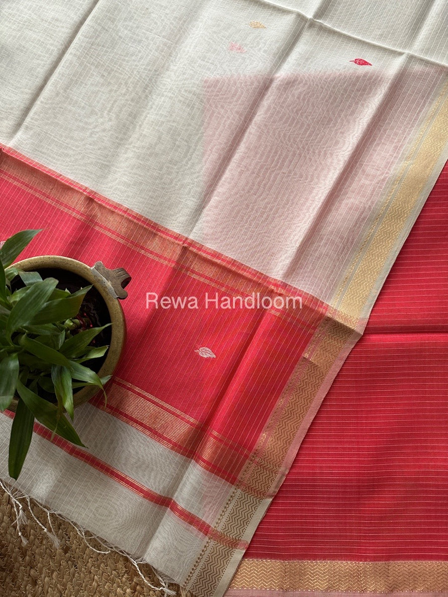 Maheshwari Carrot-WhiteMotifs Top-Dupatta Set PST0181