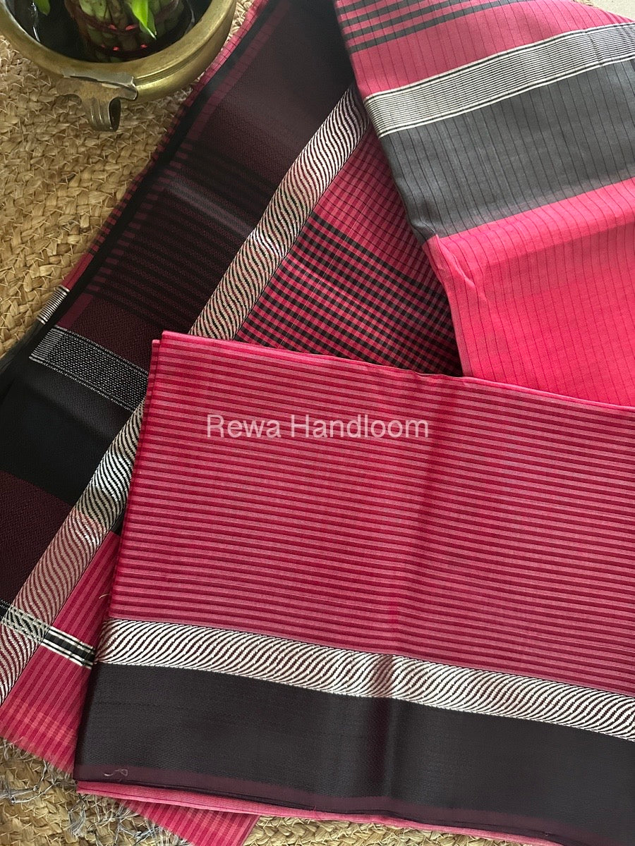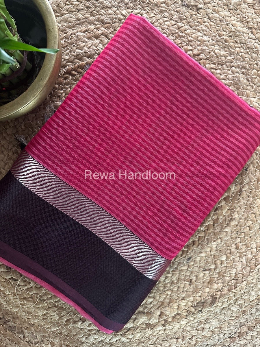 Maheshwari Dark Onion Pink Resham Thread Border Saree RTBS01