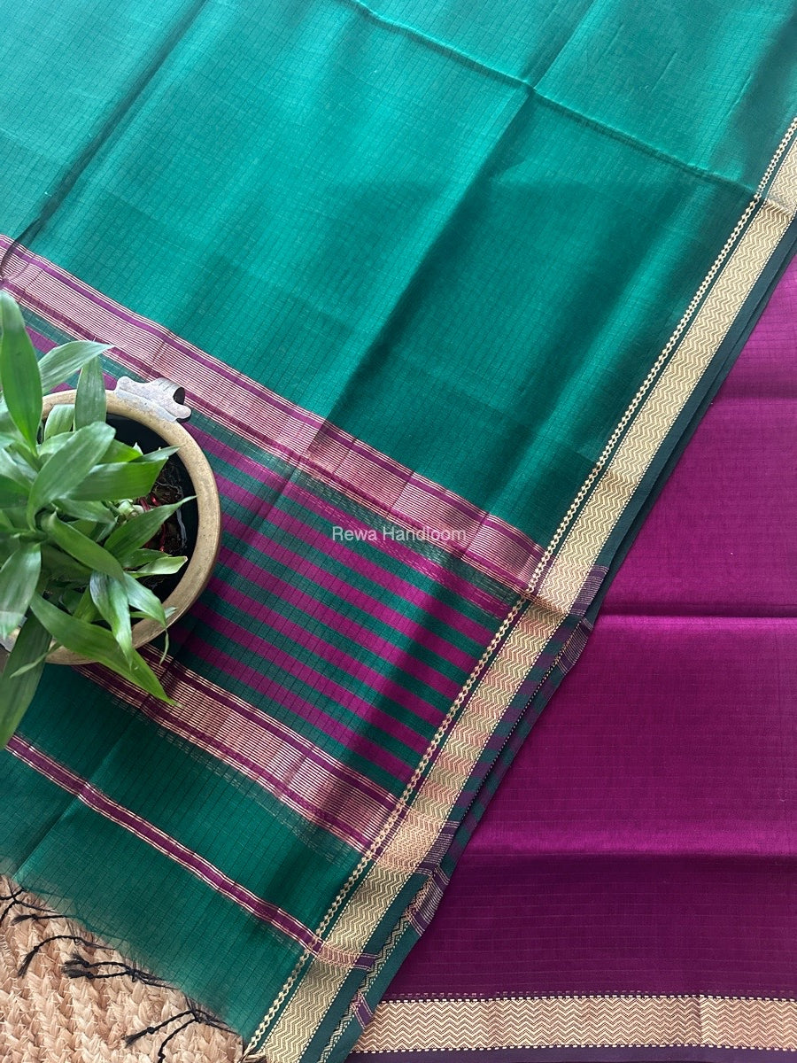 Maheshwari Dark Purple-Green Zari Border Dress Material MSBS012
