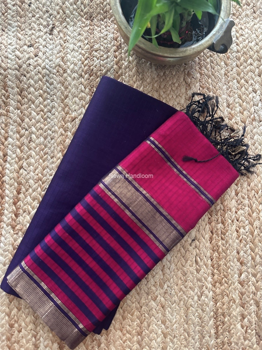 Maheshwari Dark Purple-Magenta Zari Border Dress Material MSBS018