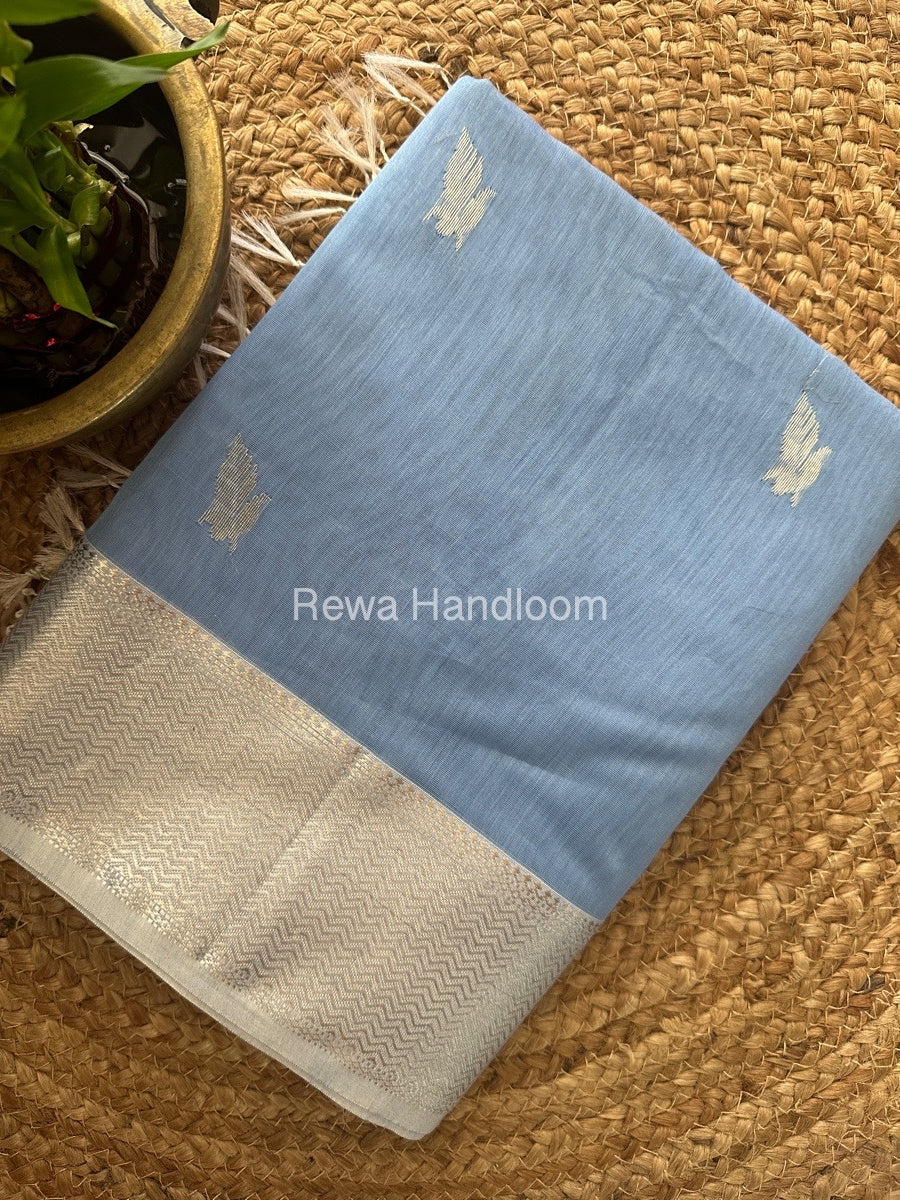 Maheshwari Dark Sky Blue Silver Butti Saree SGSB020