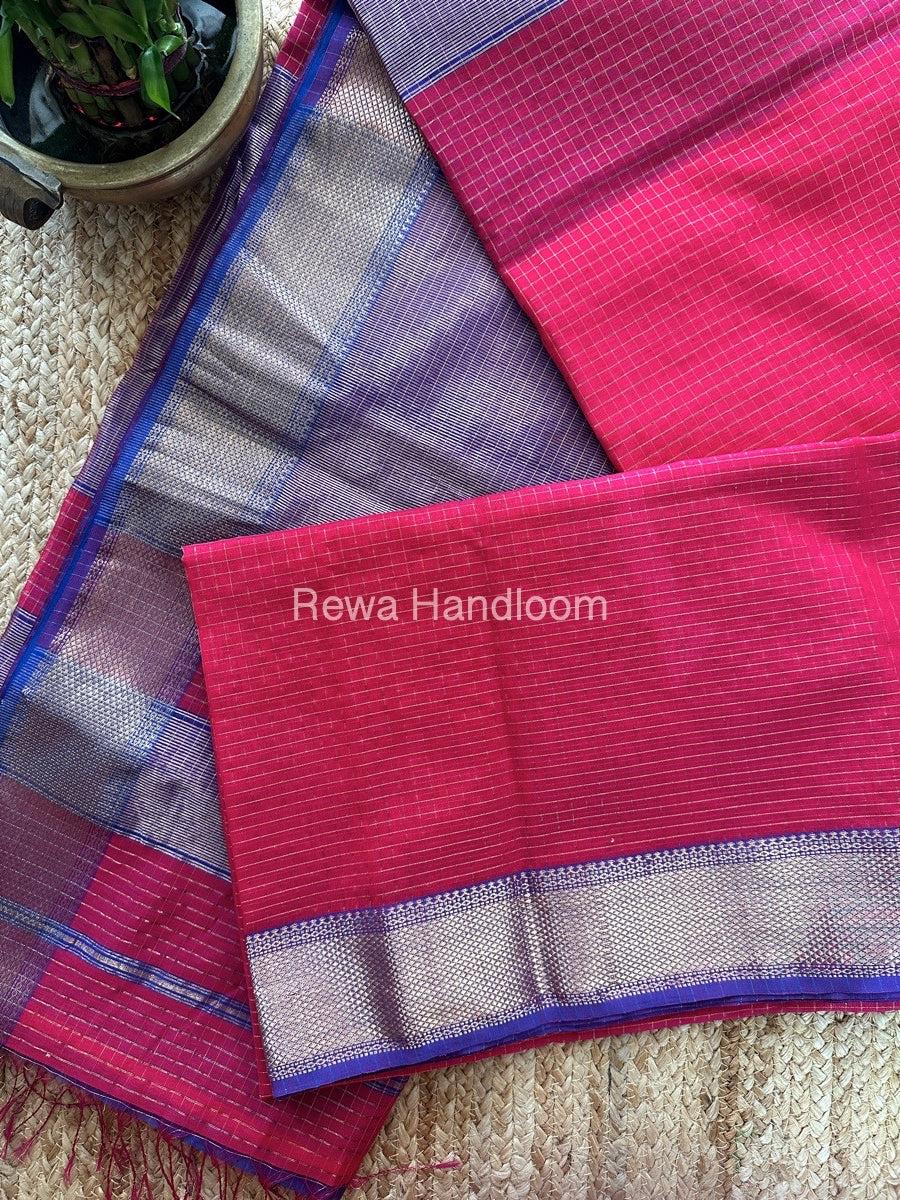 Maheshwari Fuchsia Pink Zari Checks Saree ZCHX269