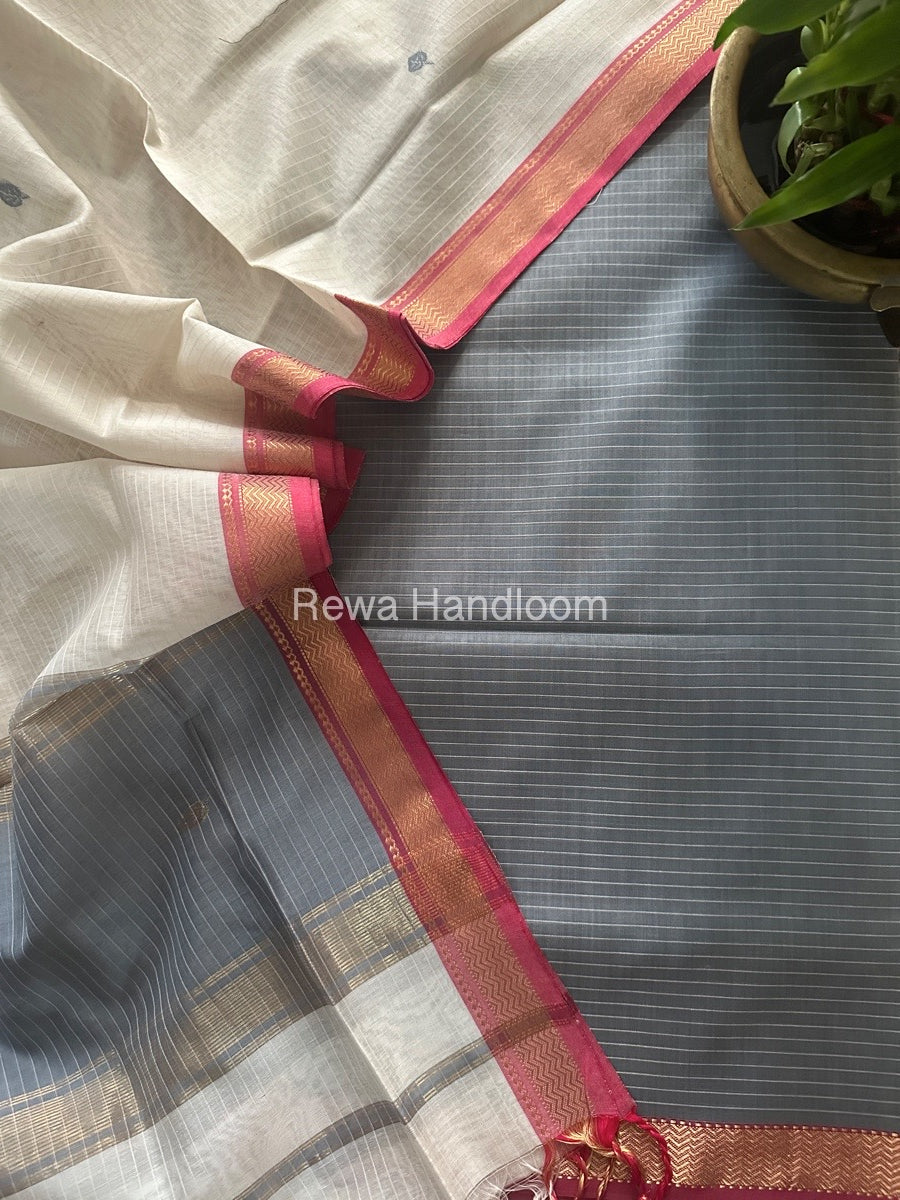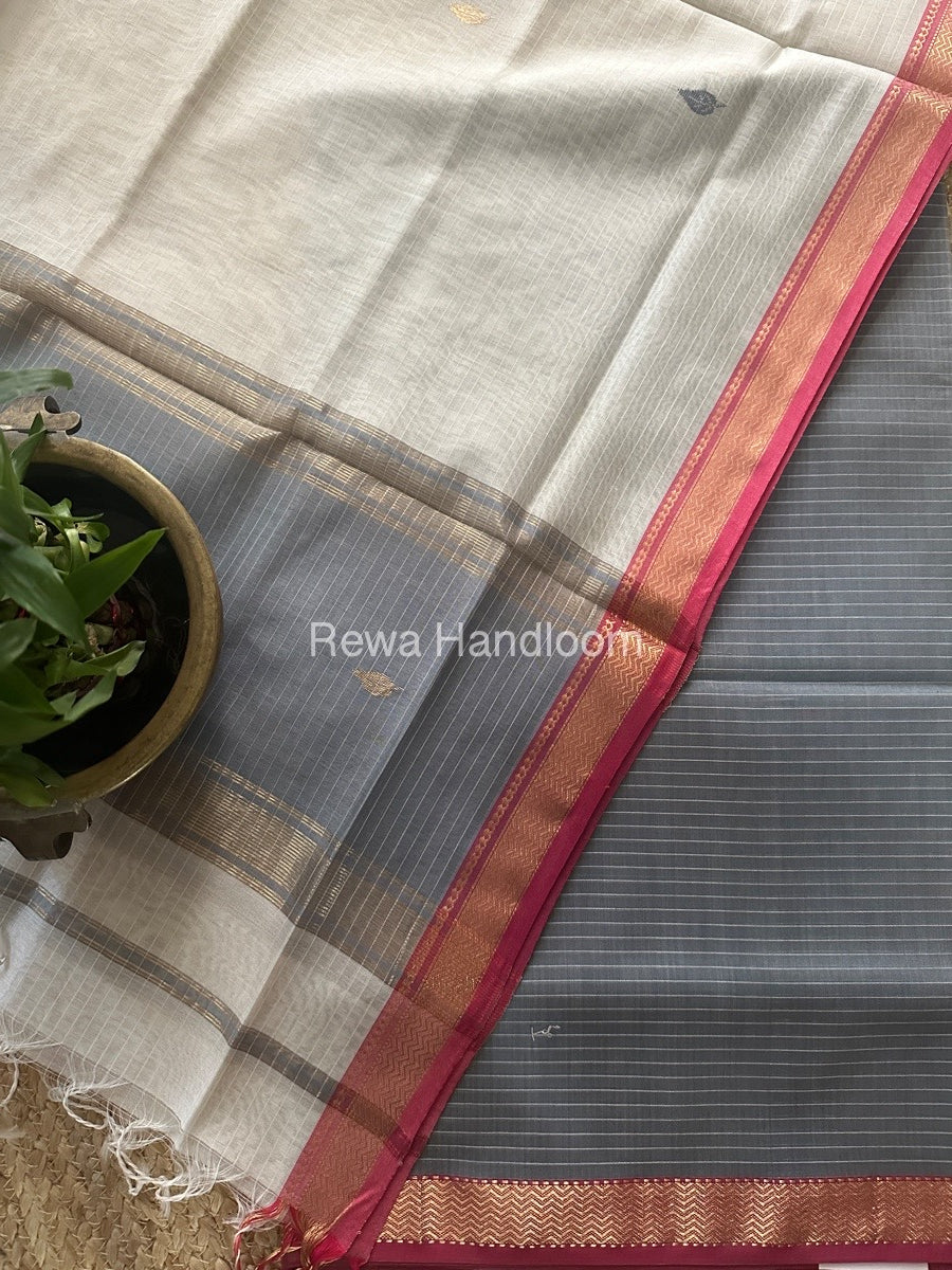 Maheshwari Grey-Off White Motifs Top-Dupatta Set PST0169