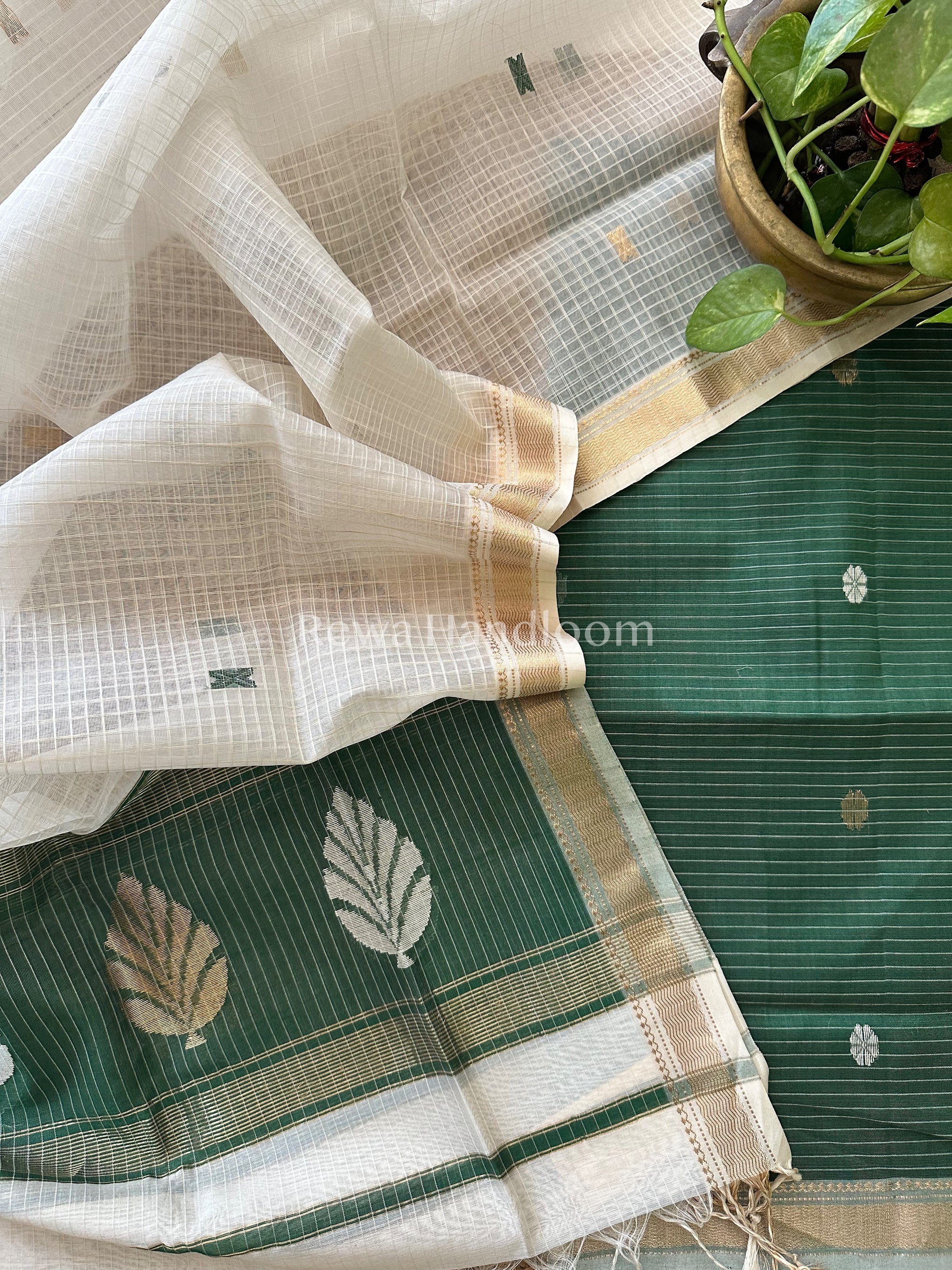 Maheshwari Jarman Blue- White Katan Motifs Top Dupatta Sets-KBS048