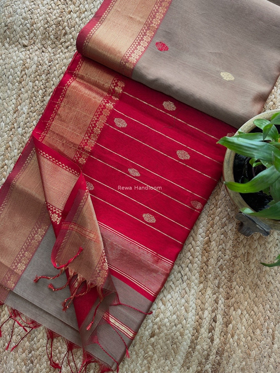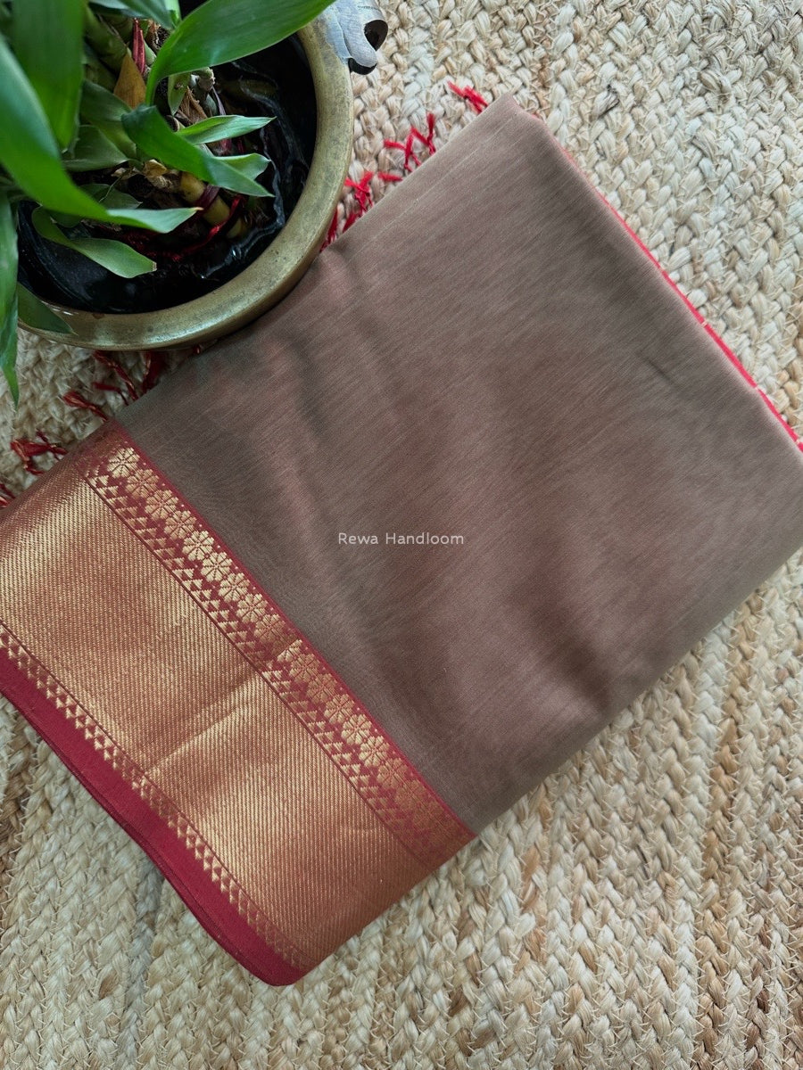 Maheshwari Light Brown Flower Butti Saree NPBS012