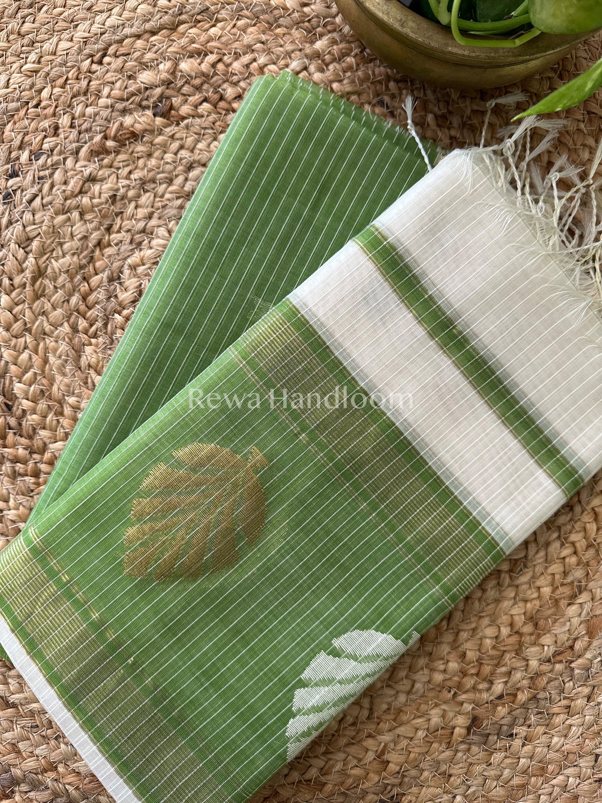 Maheshwari Light Green- White Katan Motifs Top Dupatta Sets-KBS045