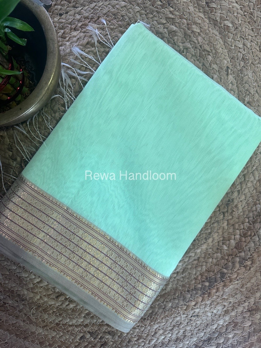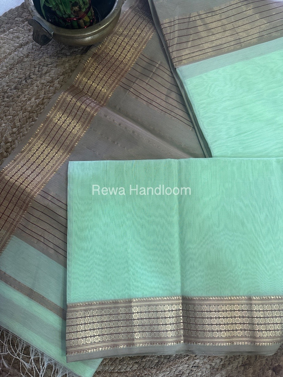 Maheshwari Light Pista Zari Border Saree ZSS02