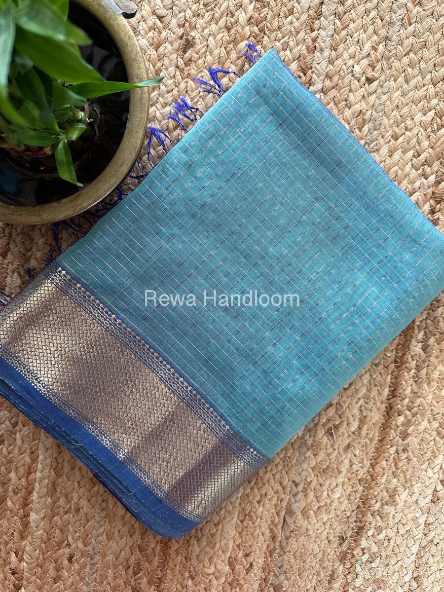 Maheshwari Light Teal Blue Zari Checks Saree ZCHX268
