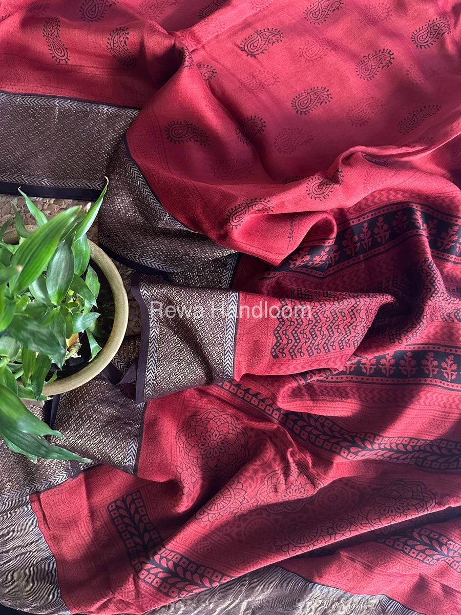 Maheshwari Maroon Bagh Print Saree BPSS050