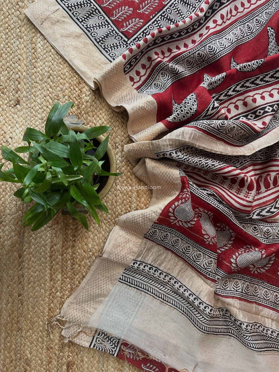 Maheshwari Maroon Bagh Print Small Border Saree MTBS115