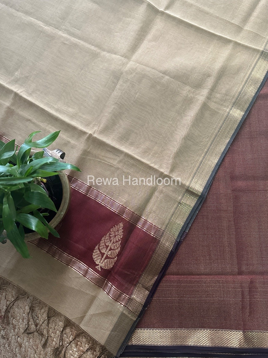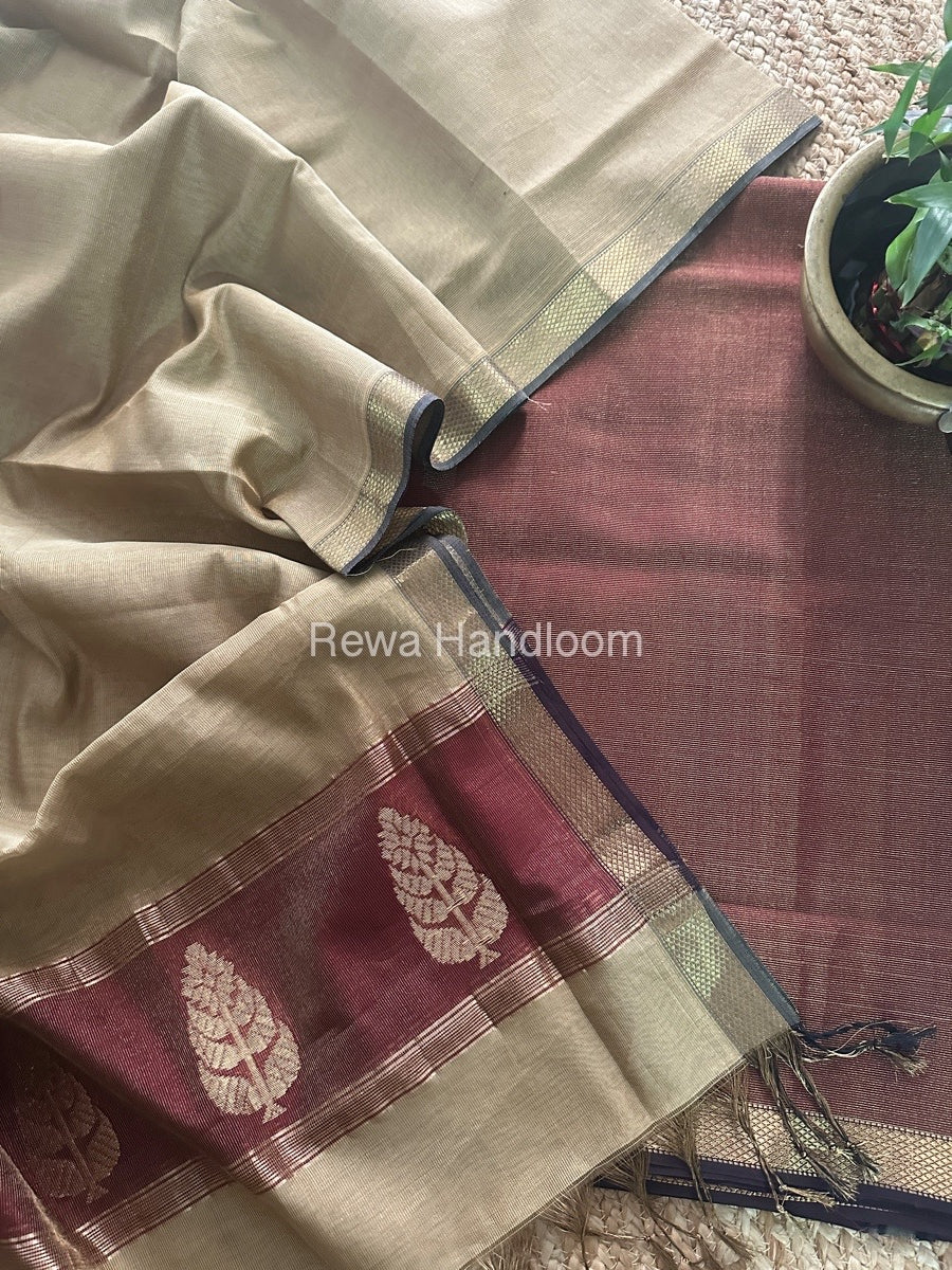 Maheshwari Maroon-Beige Tissue Butta Dress Material TPT081
