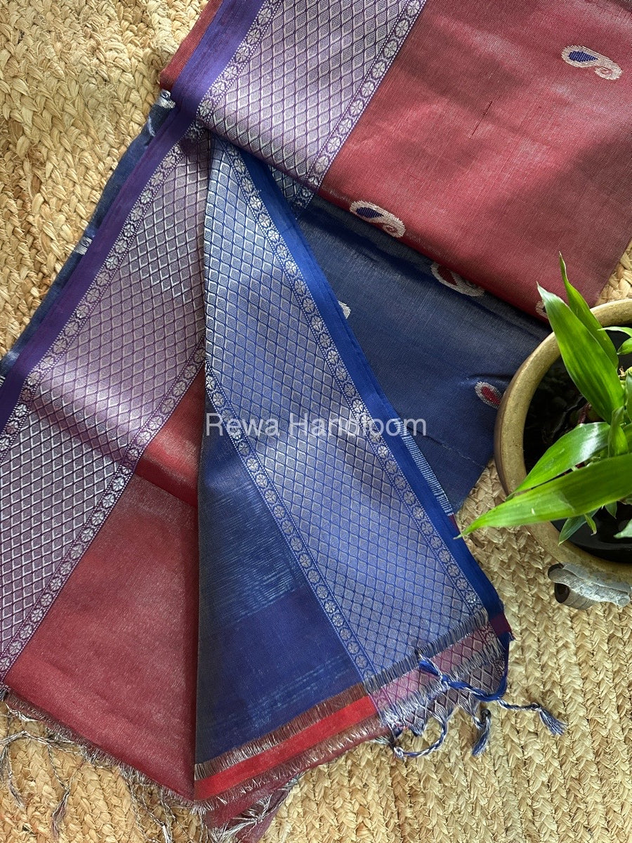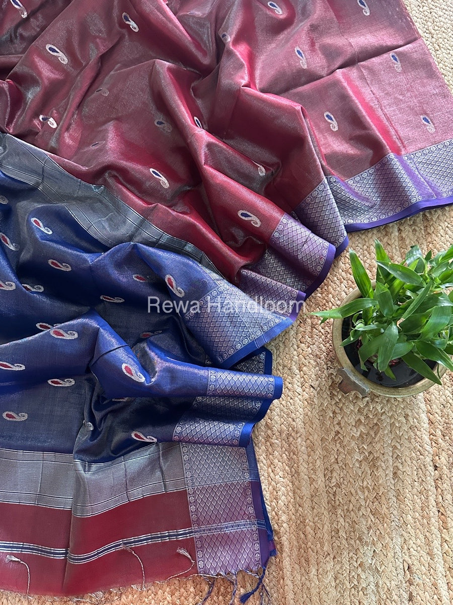 Maheshwari Maroon Silver Tissue Meena Butti Saree SMB0016
