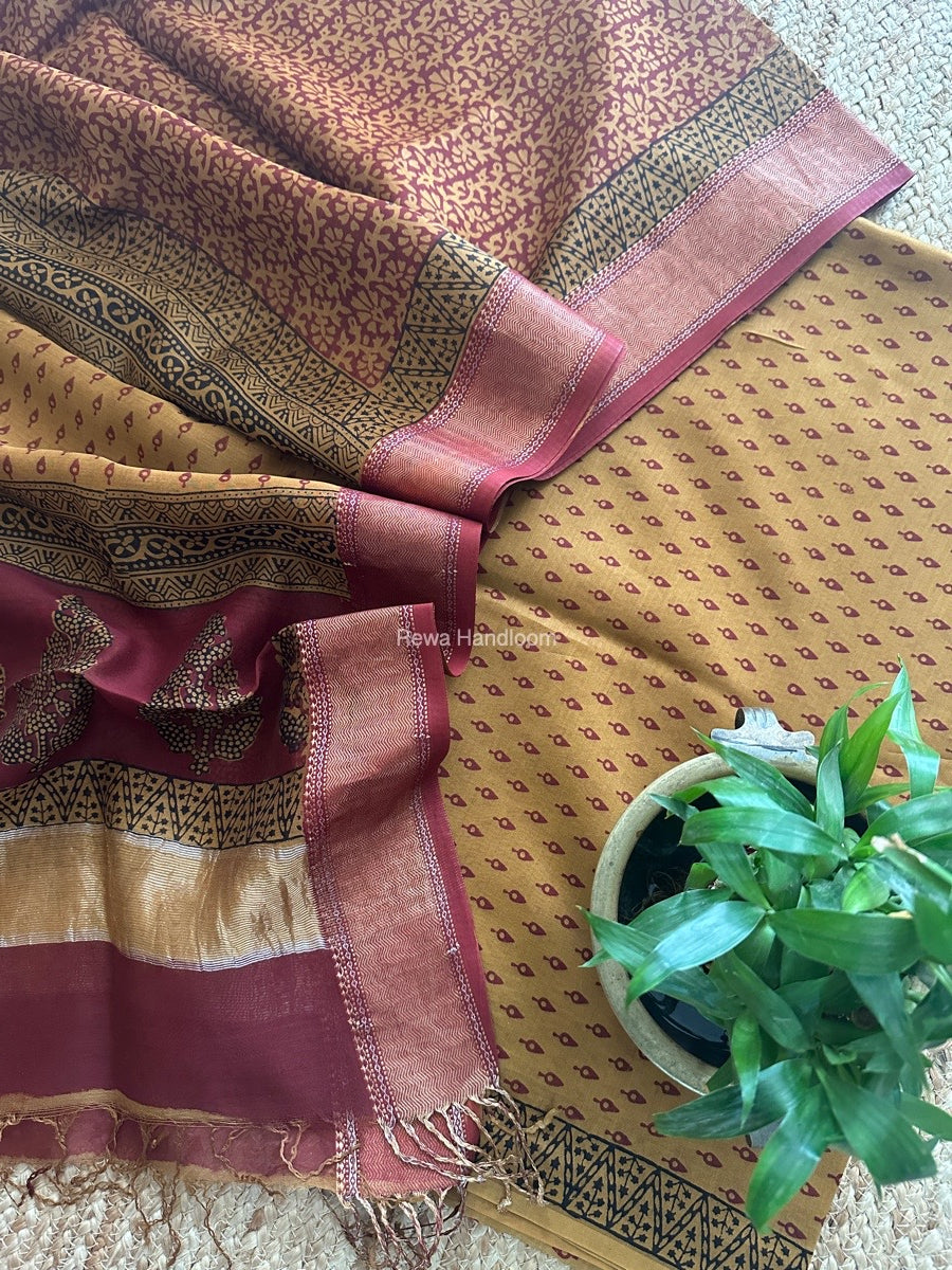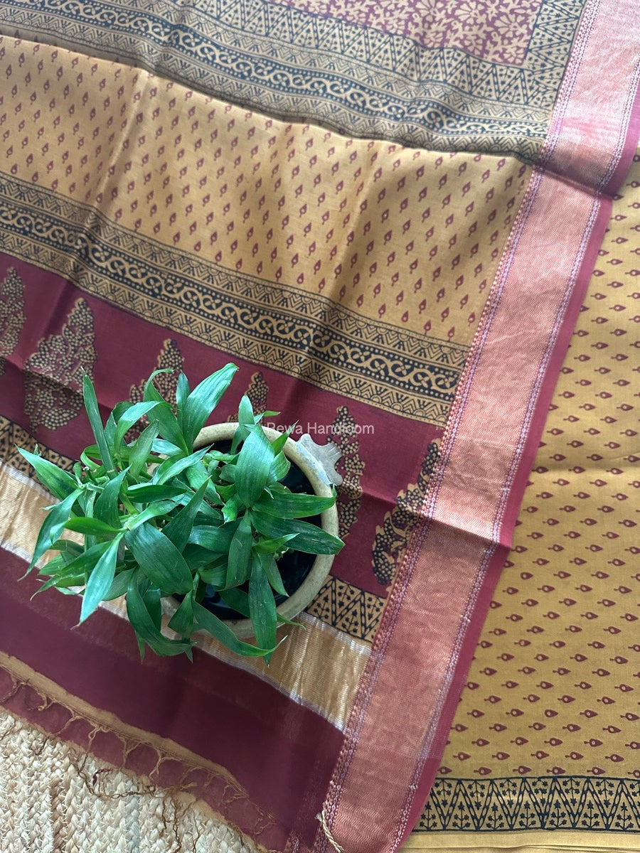 Maheshwari Mustard Yellow Bagh Print Top-Dupatta Set BTD03