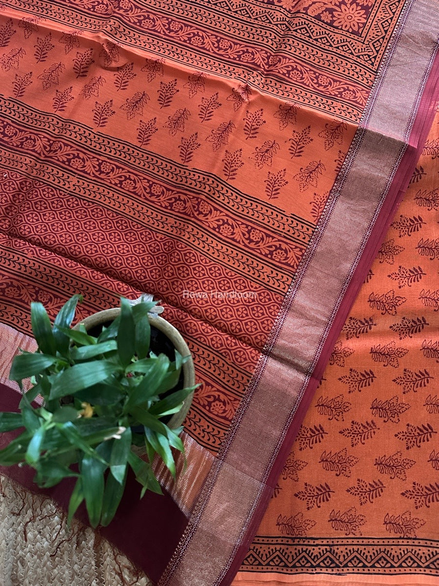 Maheshwari Orange Bagh Print Top-Dupatta Set BTD027