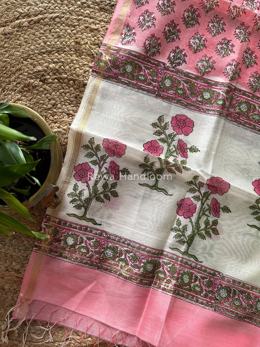 Maheshwari Pink Hand Block Printed Dupatta HD014
