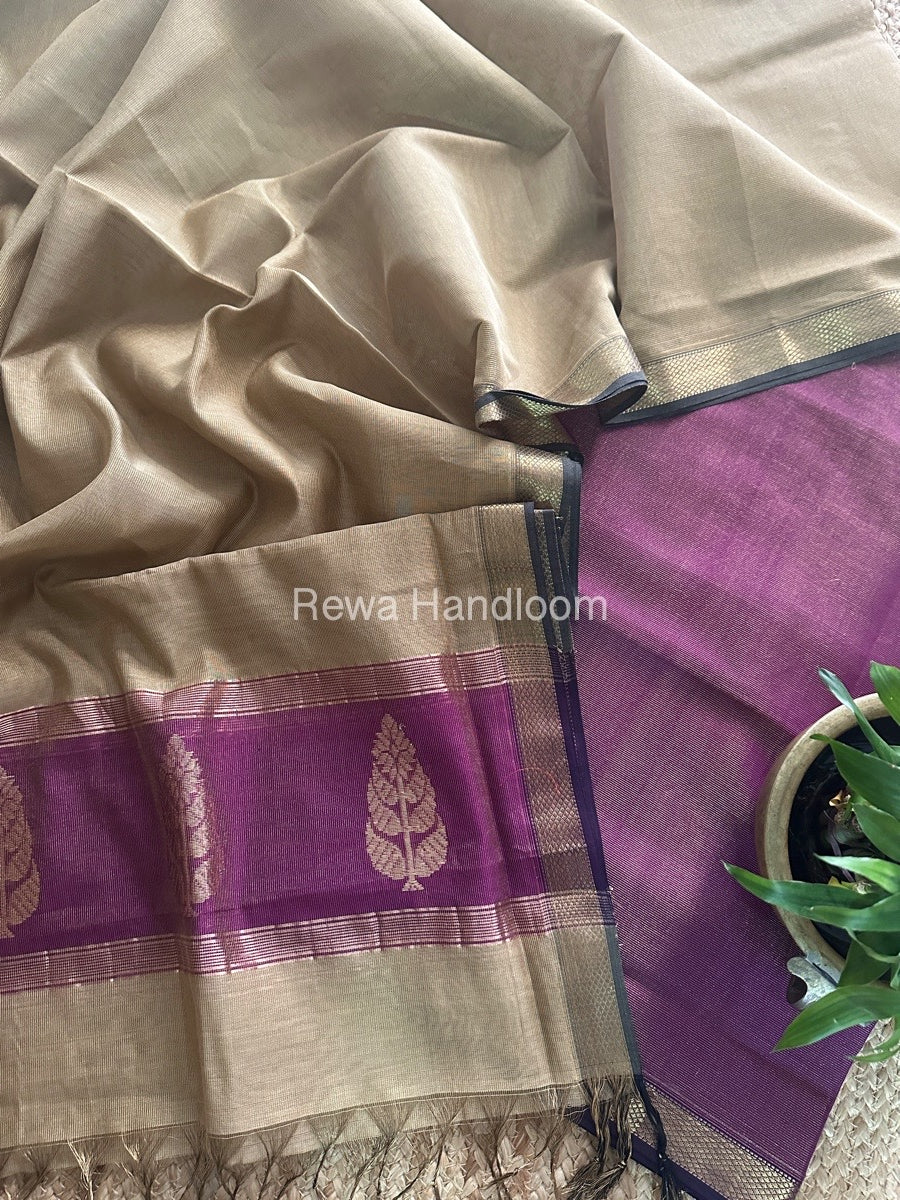 Maheshwari Purple-Beige Tissue Butta Dress Material TPT078