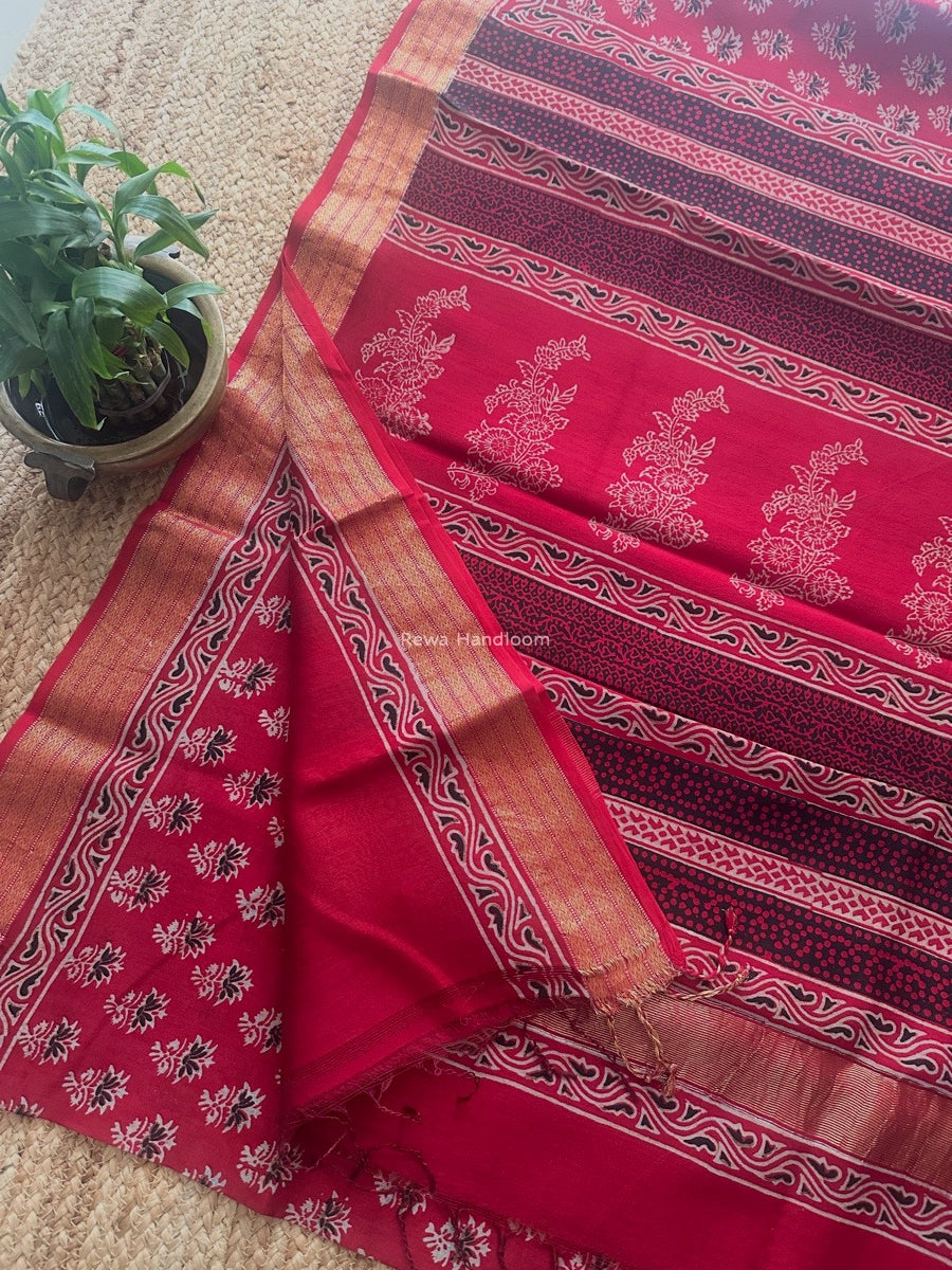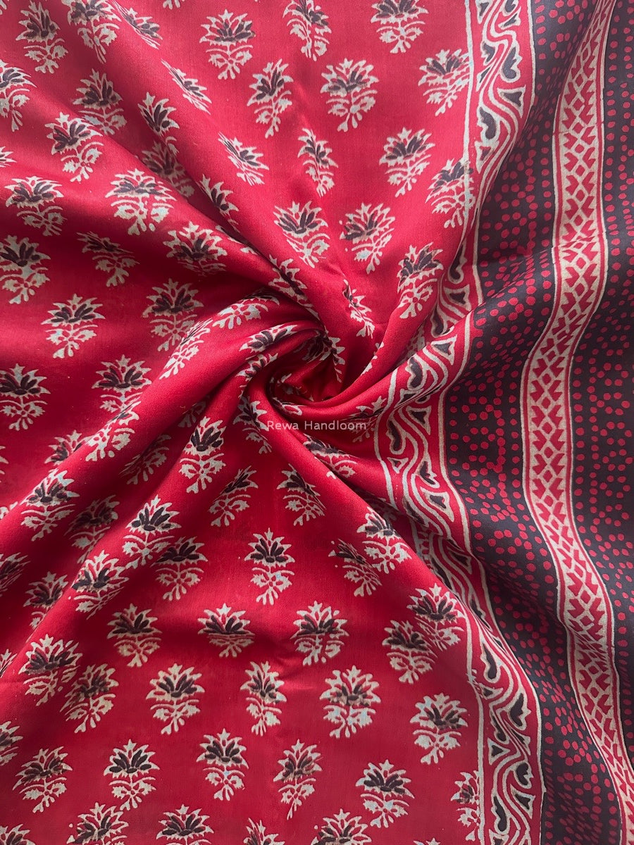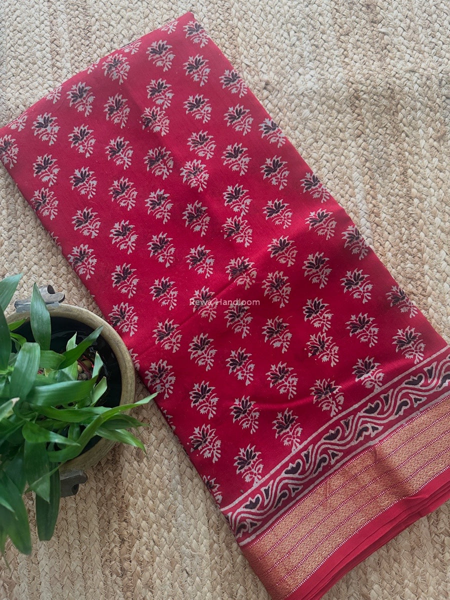 Maheshwari Red Bagh Print Small Border Saree MTBS126