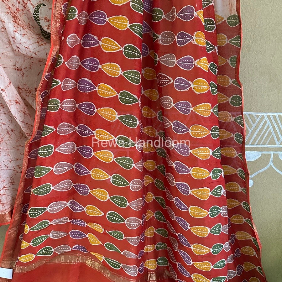 Maheshwari Red Batik Indonesian Print Saree IBS051