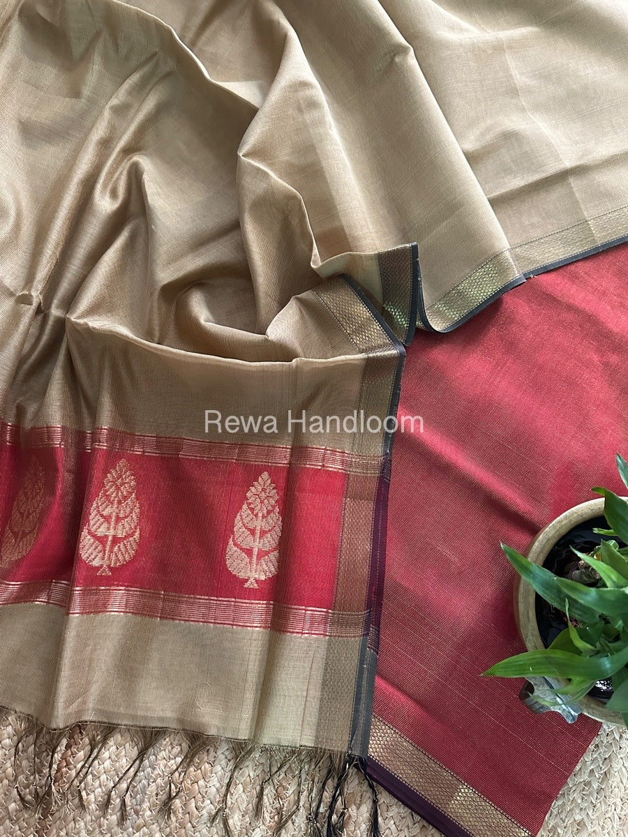 Maheshwari Red-Beige Tissue Butta Dress Material TPT076