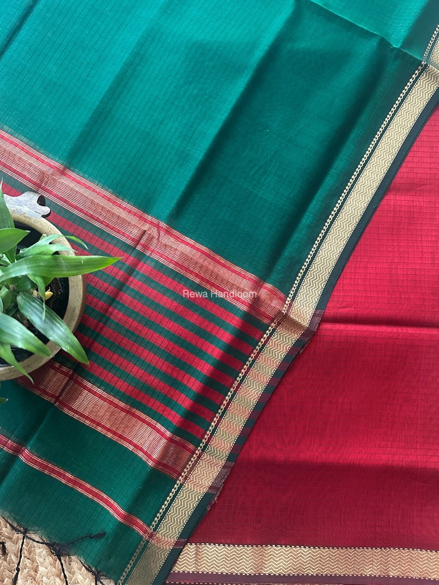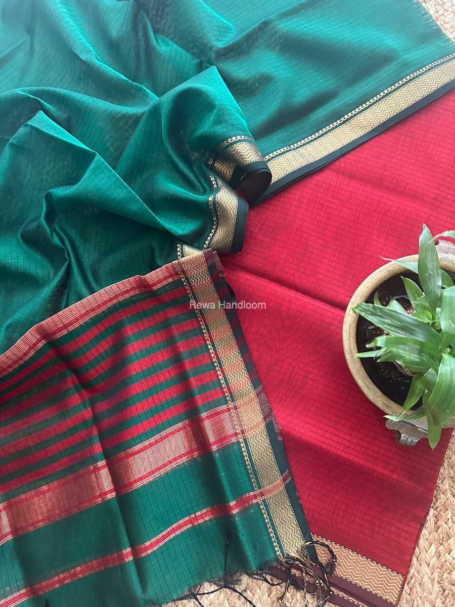 Maheshwari Red-Green Zari Border Dress Material MSBS021