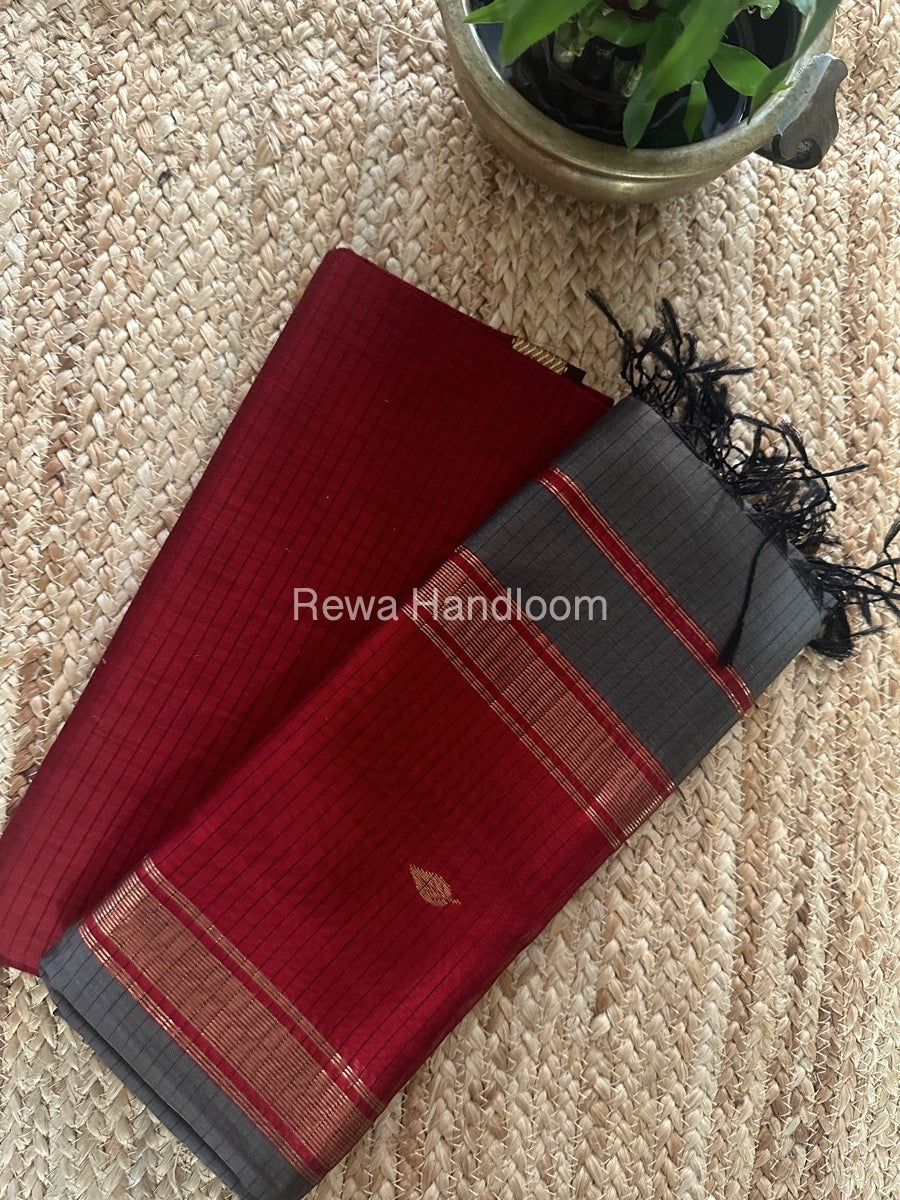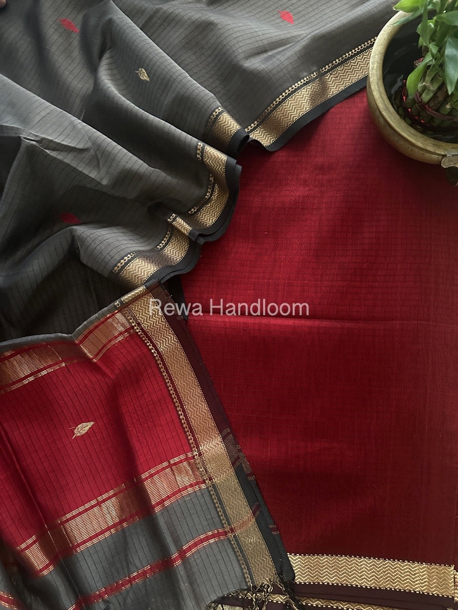 Maheshwari Red-Grey Motifs Top-Dupatta Set PST0155