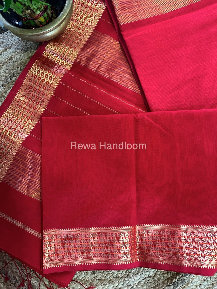 Maheshwari Red Zari Border Saree ZSS03