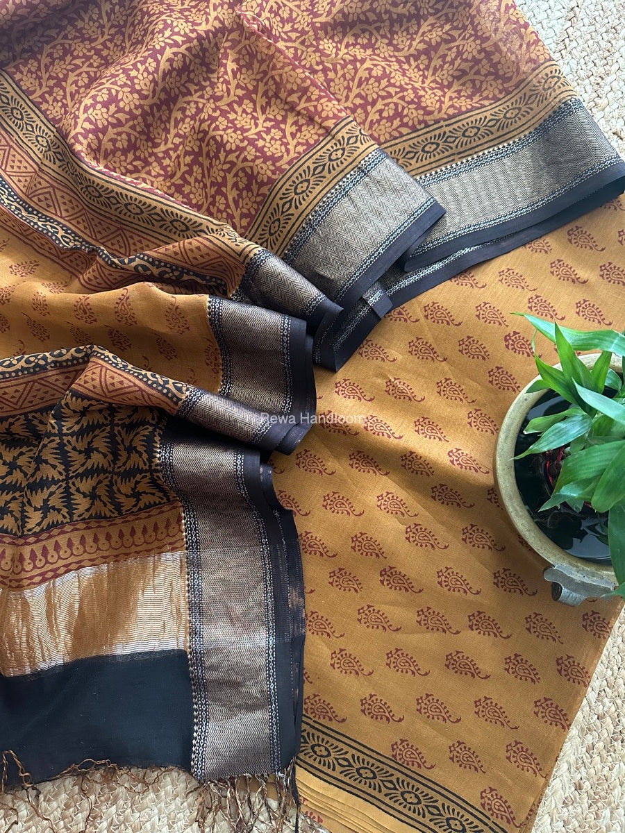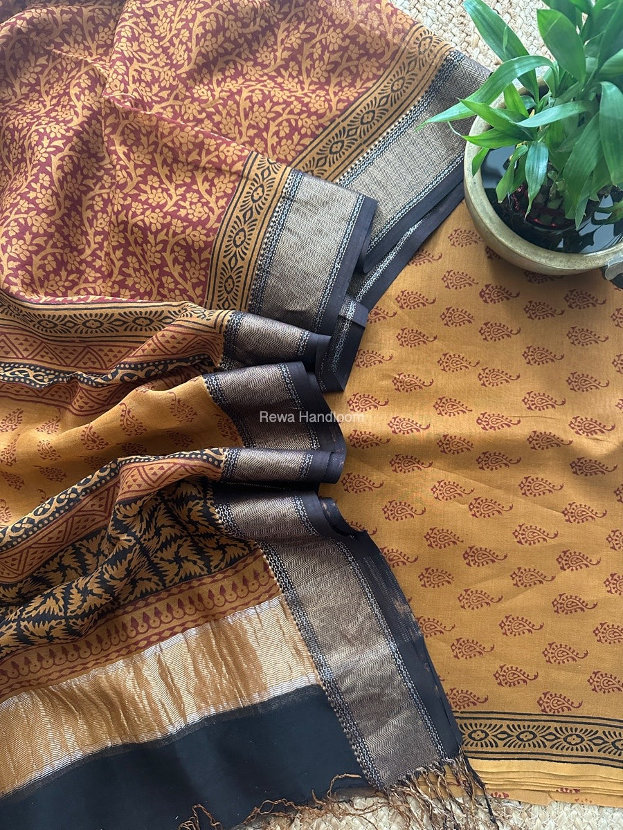 Maheshwari Rust Bagh Print Top-Dupatta Set BTD013