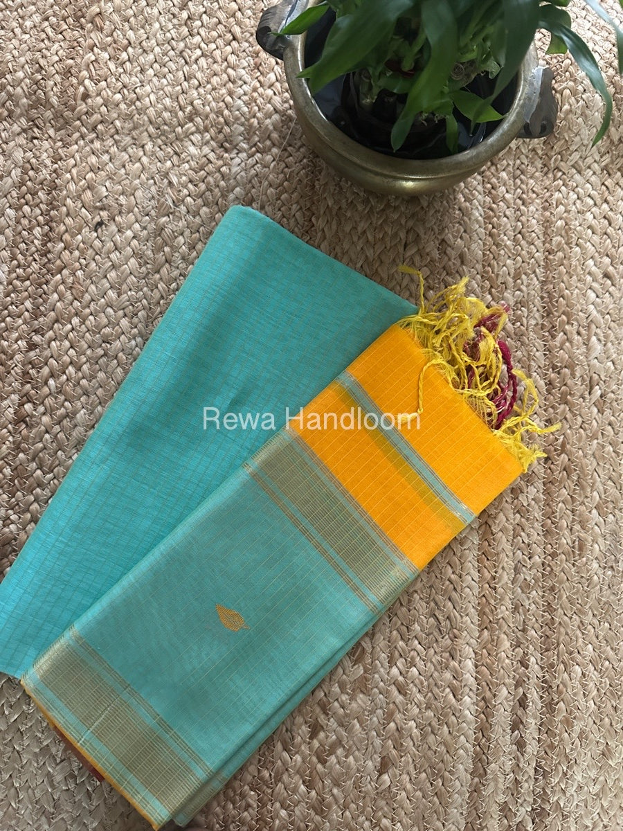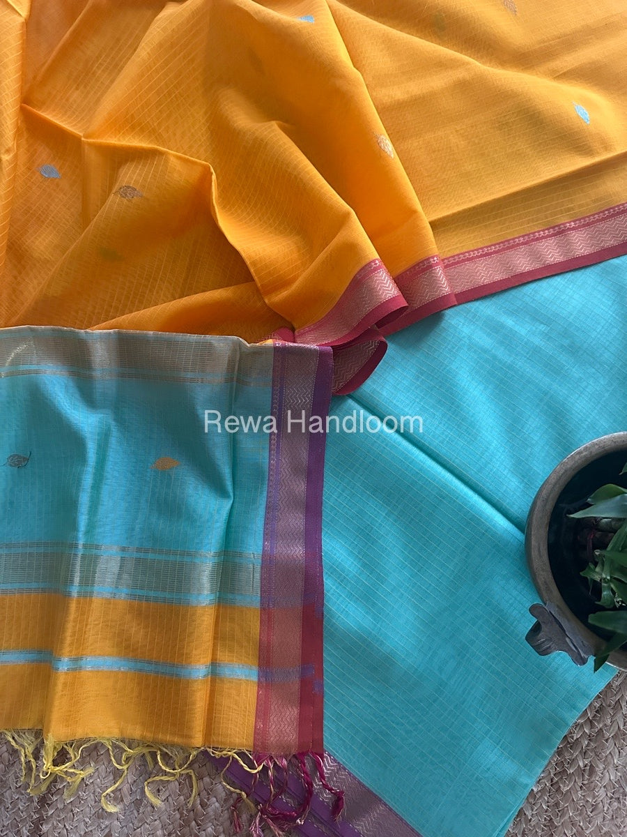 Maheshwari Sea Green-Orange Motifs Top-Dupatta Set PST0160