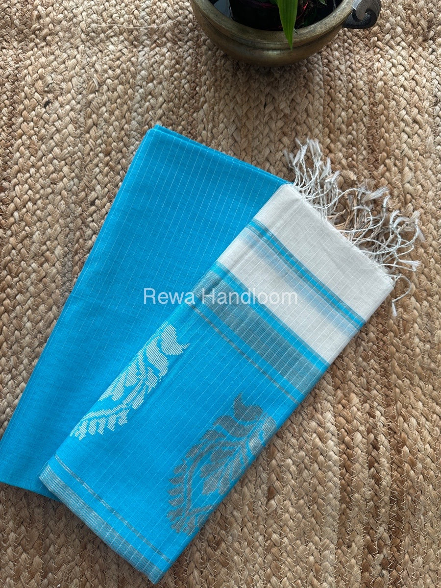 Maheshwari Sky Blue-White Motifs Top-Dupatta Set MS0140