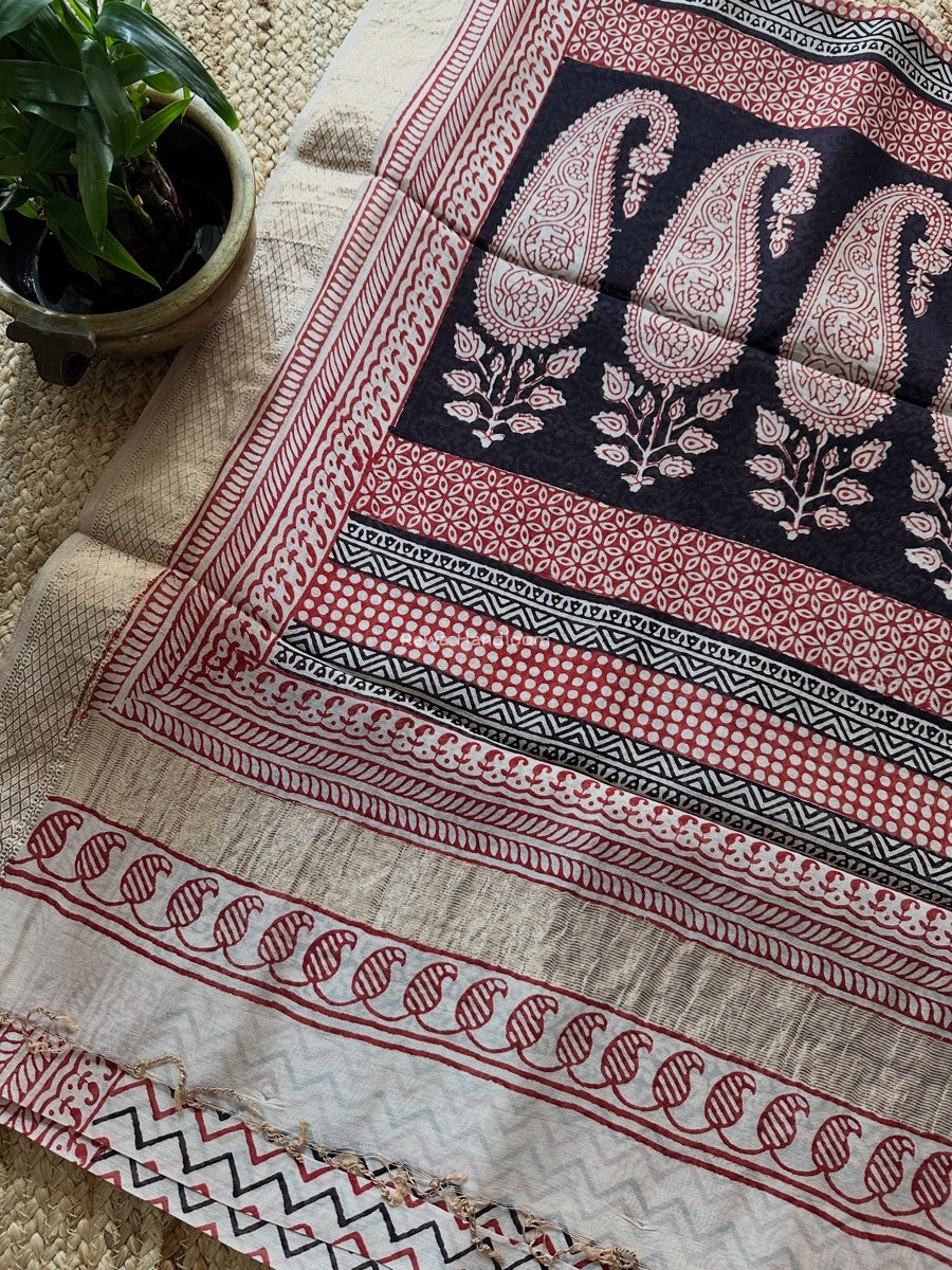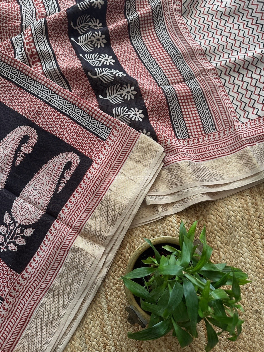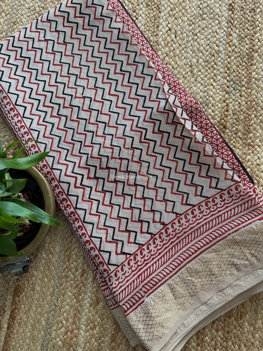 Maheshwari White Bagh Print Small Border Saree MTBS116