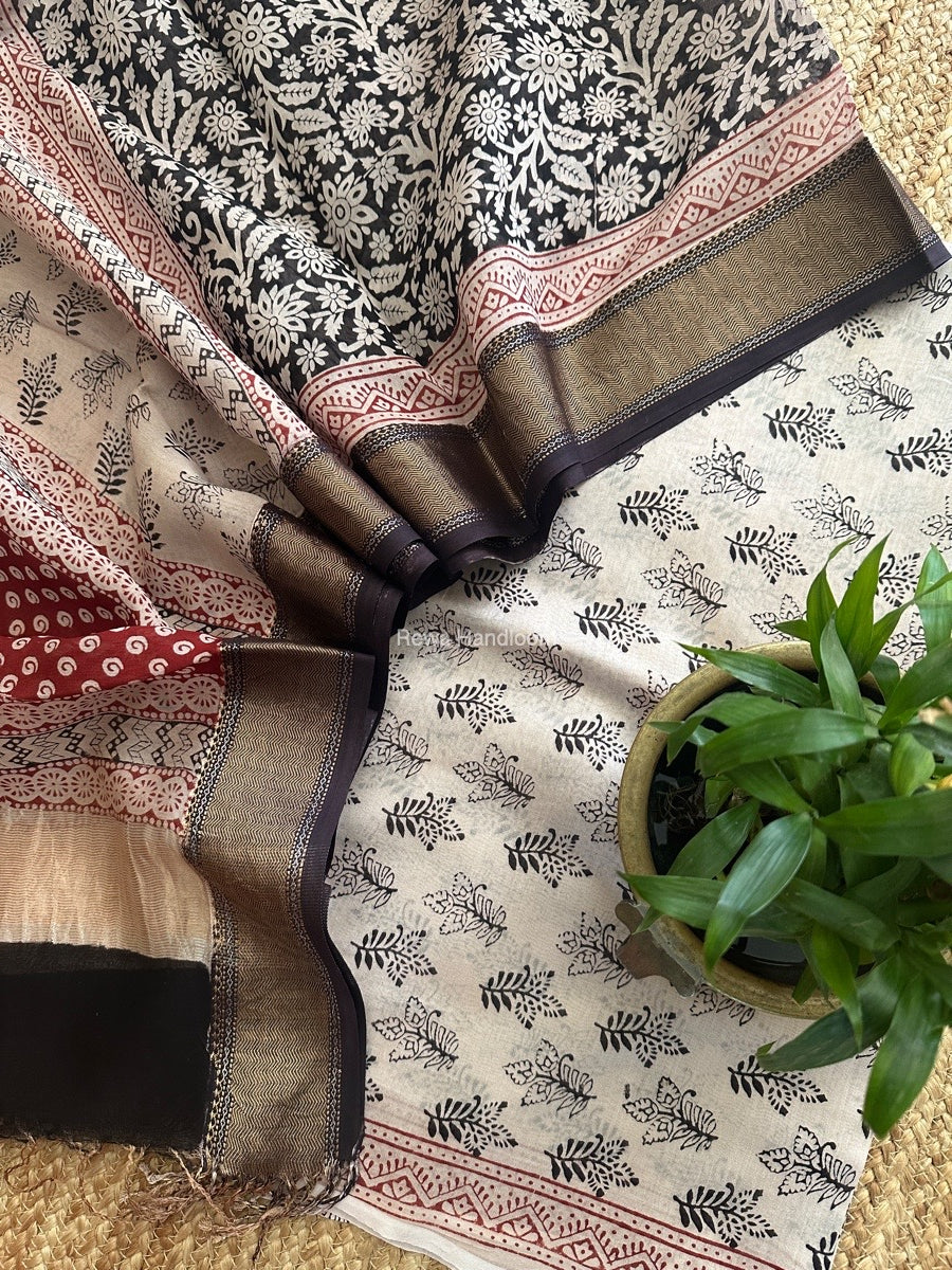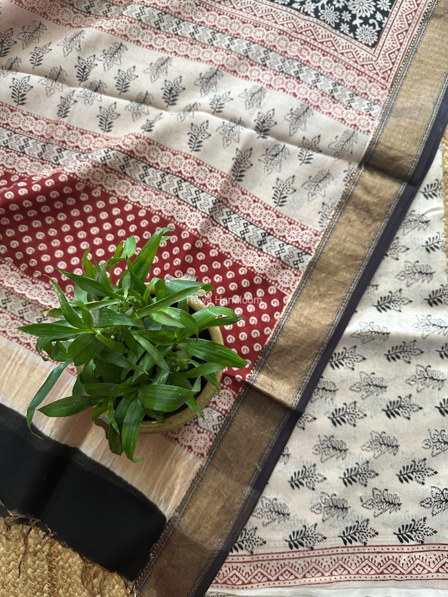 Maheshwari White Bagh Print Top-Dupatta Set BTD014