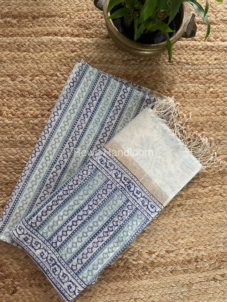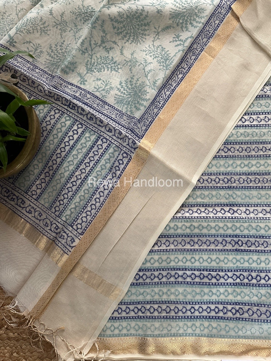 Maheshwari White Handblock Print Top-Dupatta HBS0125