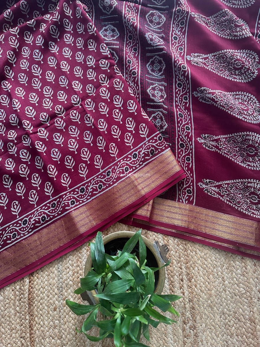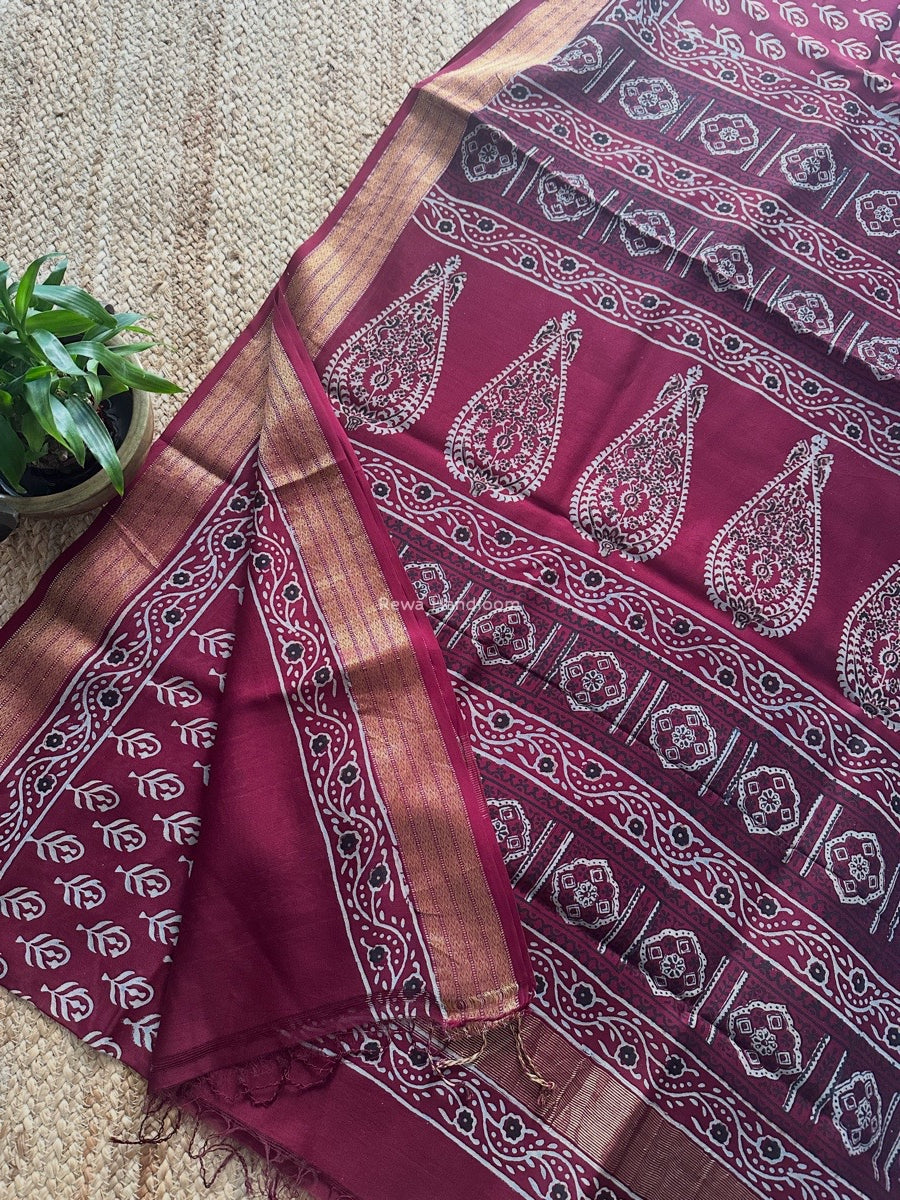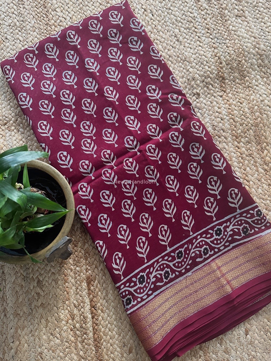 Maheshwari Wine Bagh Print Small Border Saree MTBS109