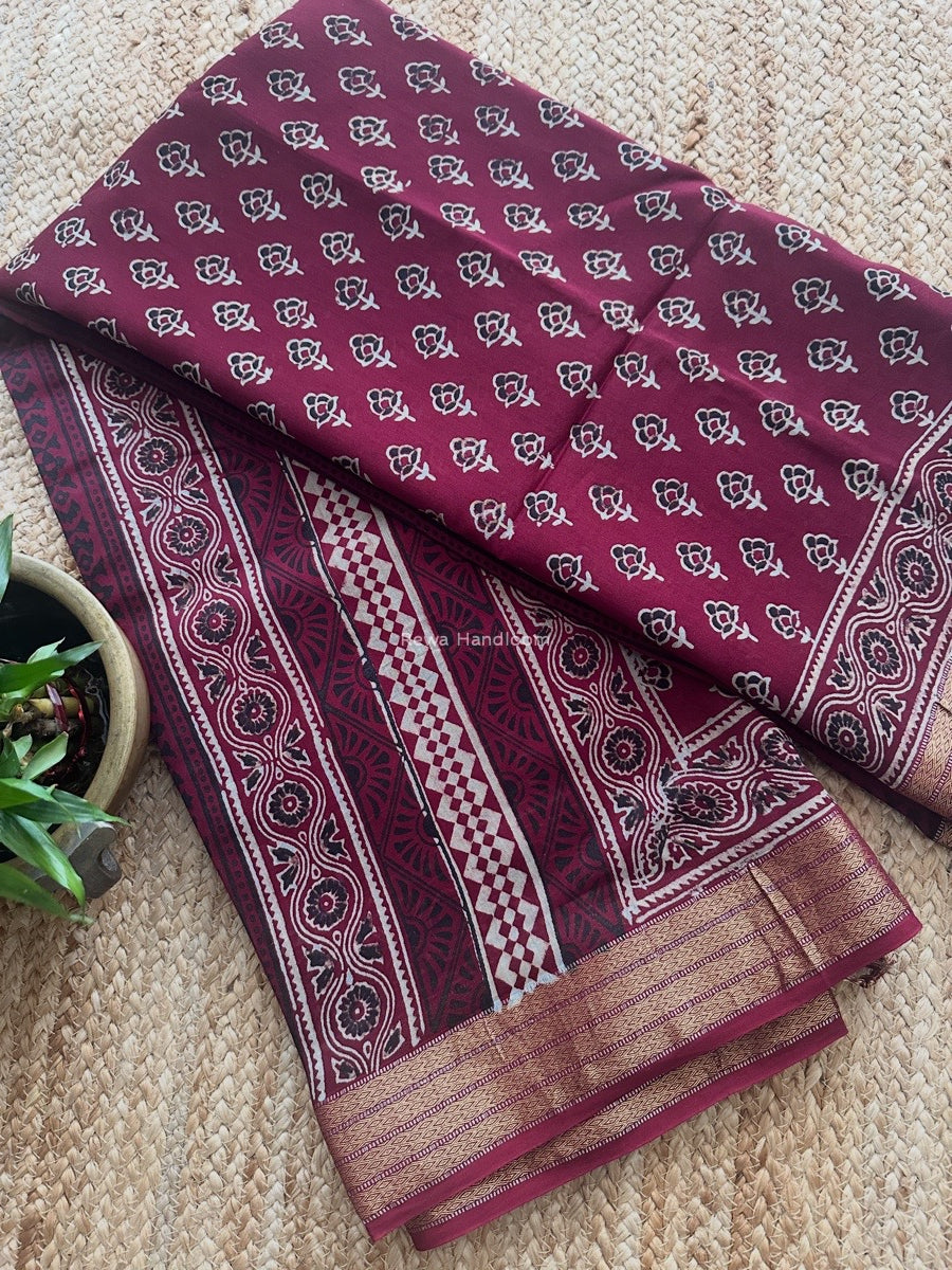 Maheshwari Wine Bagh Print Small Border Saree MTBS117