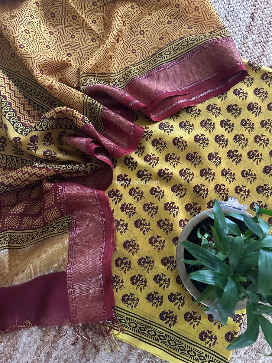 Maheshwari Yellow Bagh Print Top-Dupatta Set BTD015