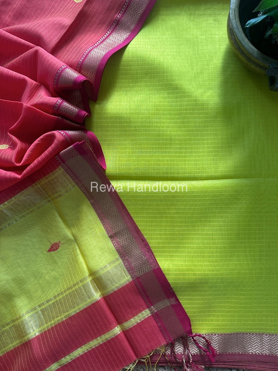 Maheshwari Yellow-Fuchsia Pink Motifs Top-Dupatta Set PST0175
