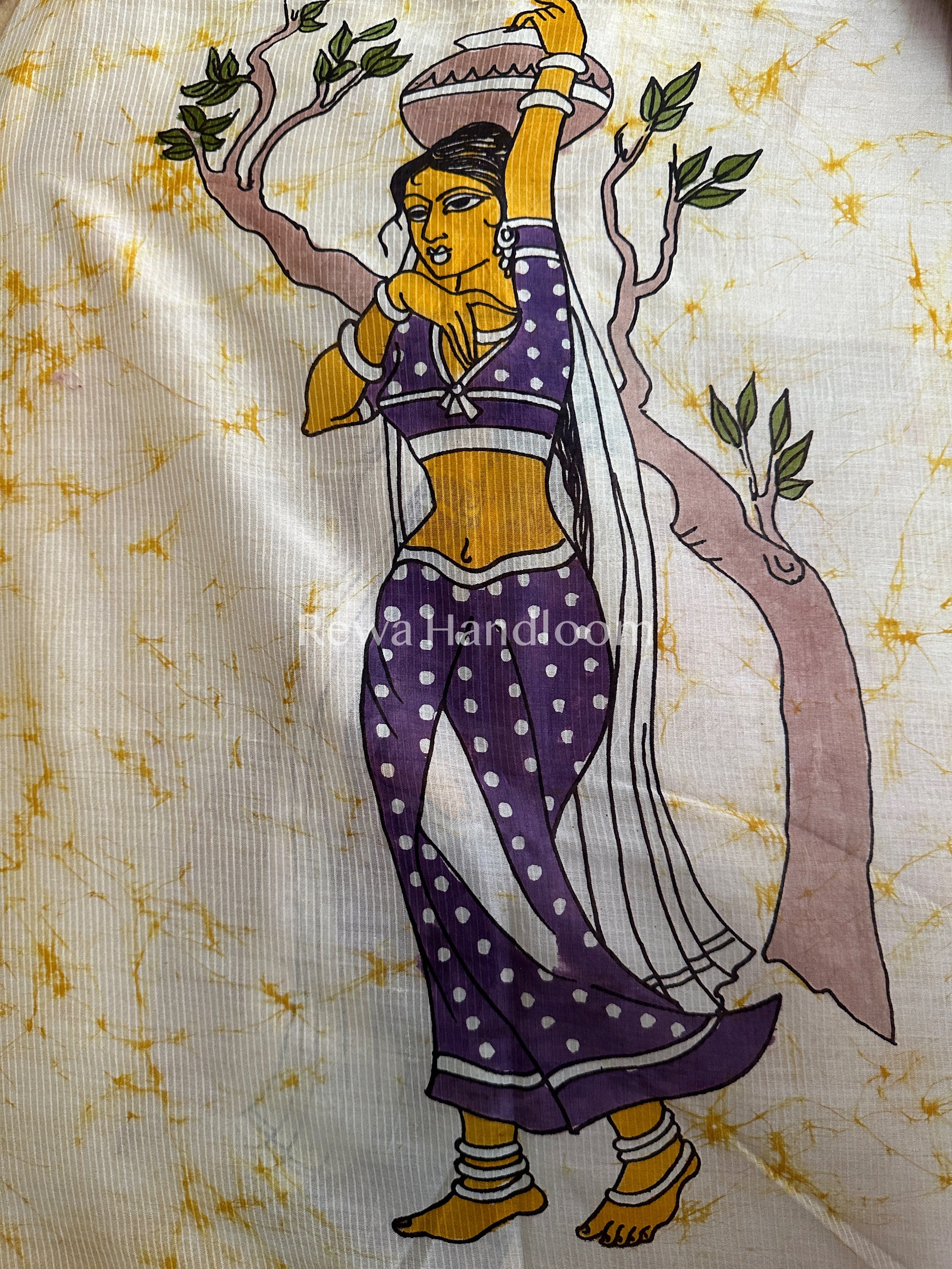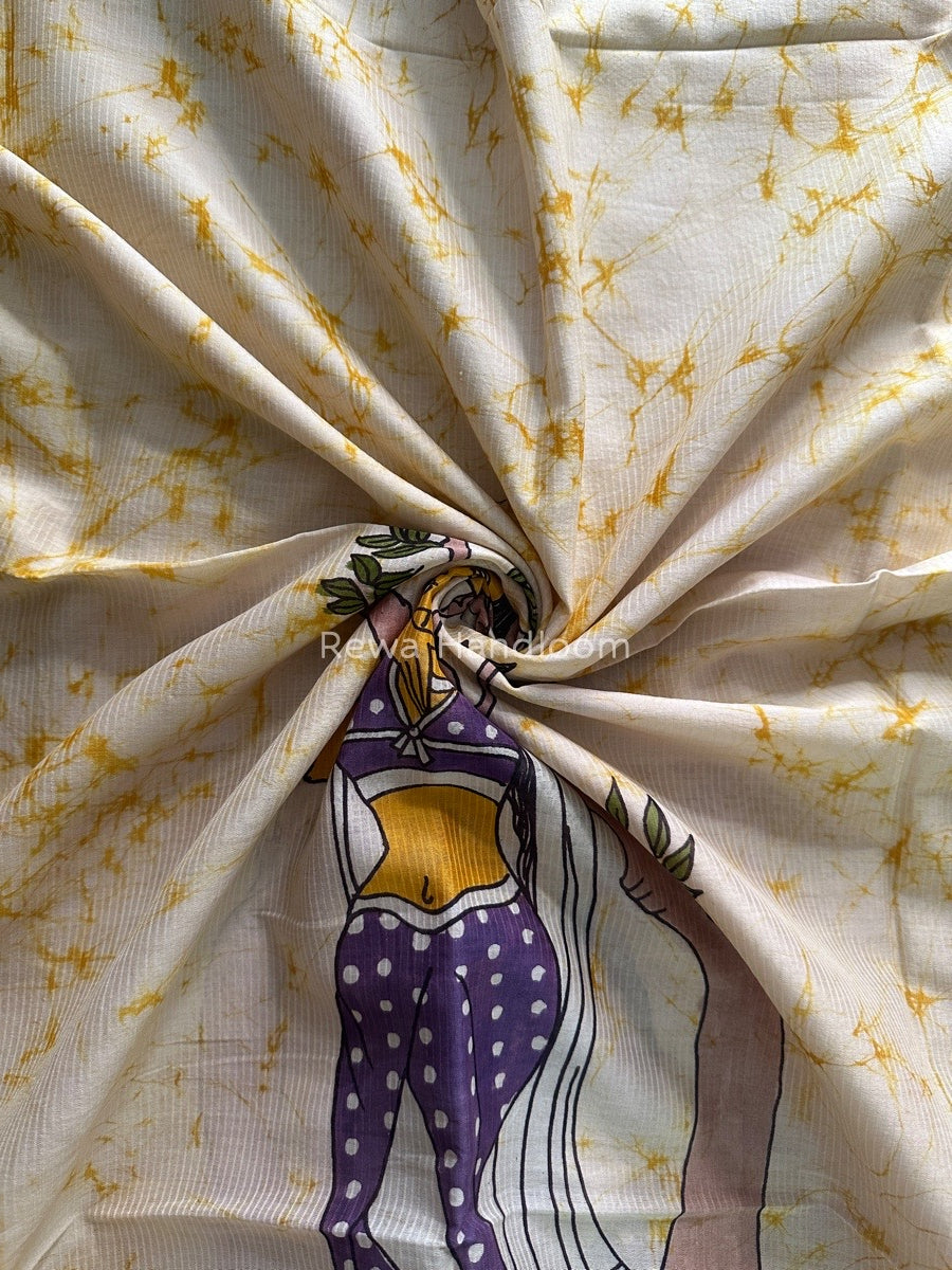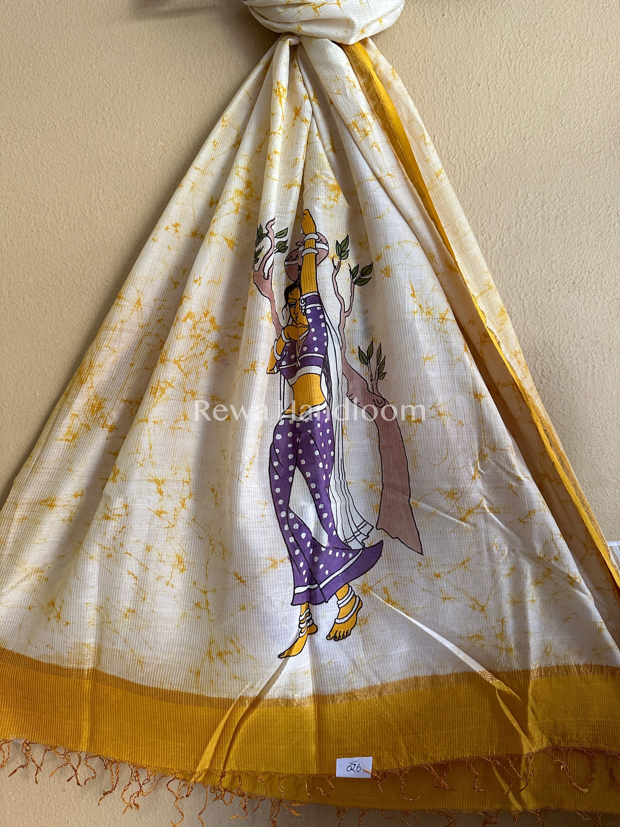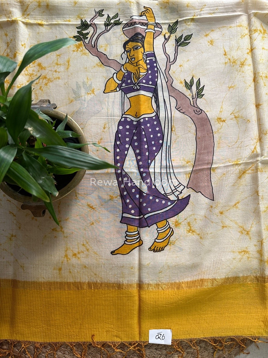 Maheshwari Yellow Hand painted Dupatta BT016