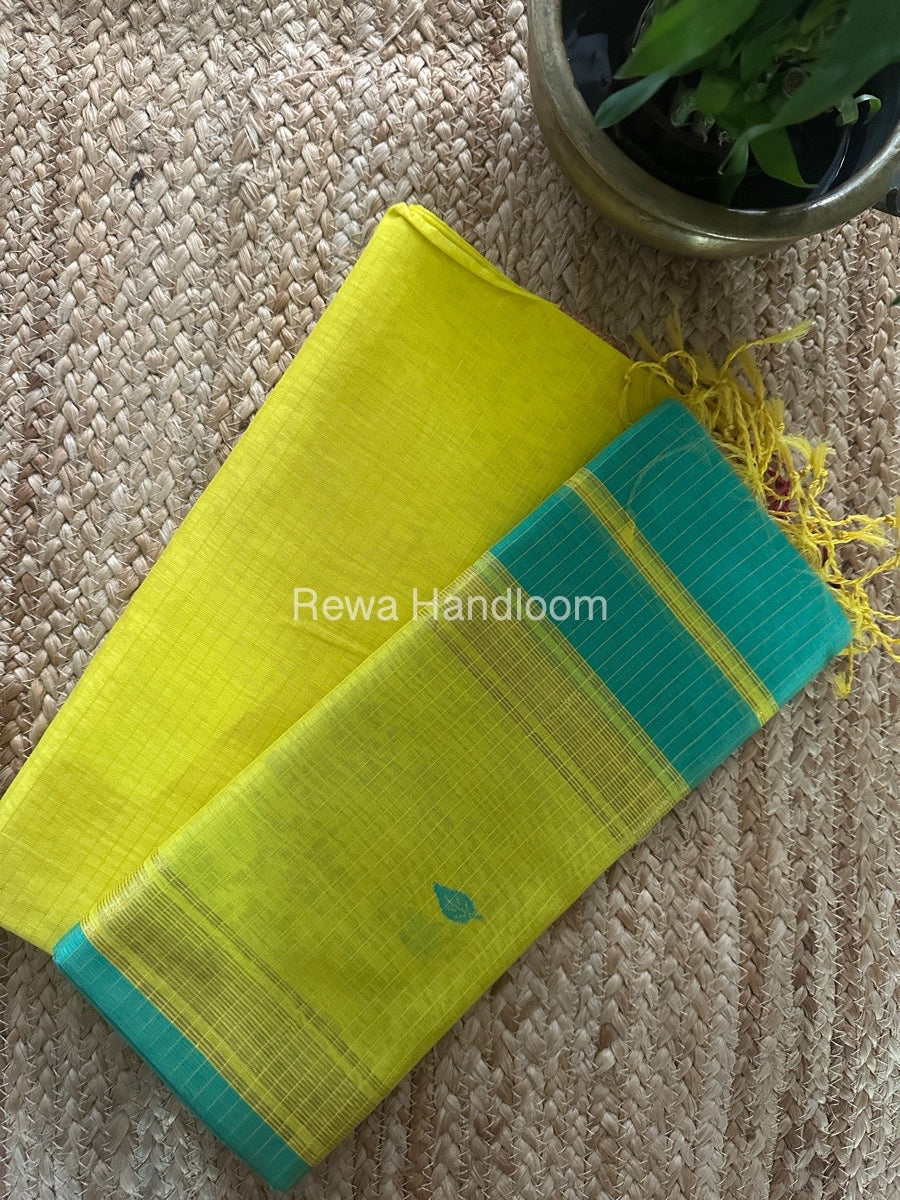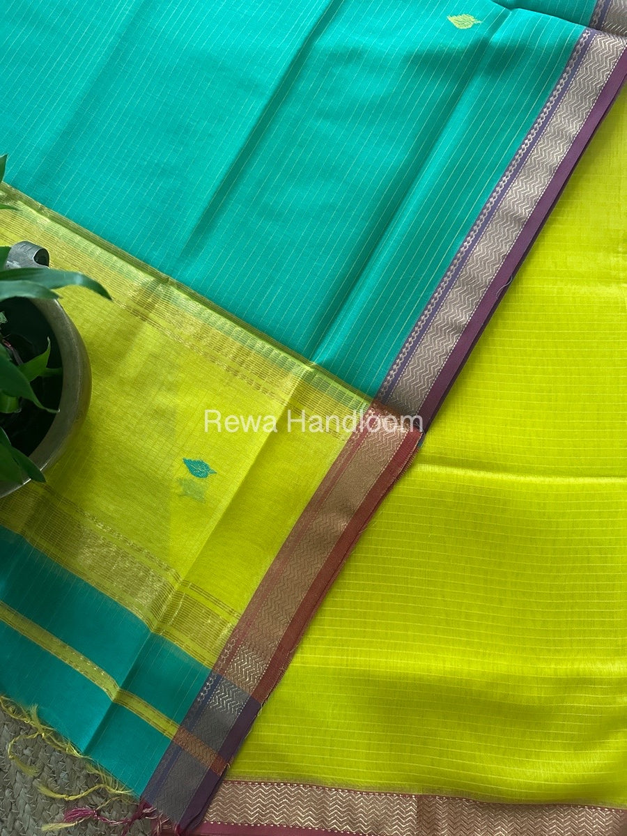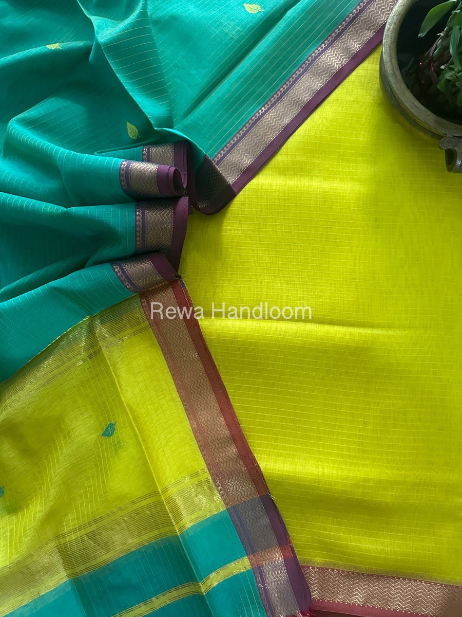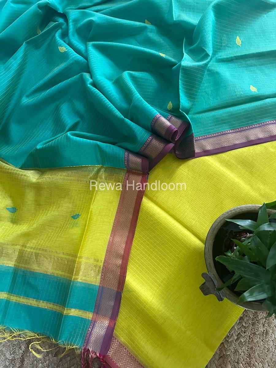 Maheshwari Yellow-Sea Green Motifs Top-Dupatta Set PST0158