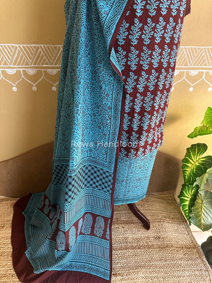 Maroon-Firozi Bagh Print Cotton Suit BCSP097