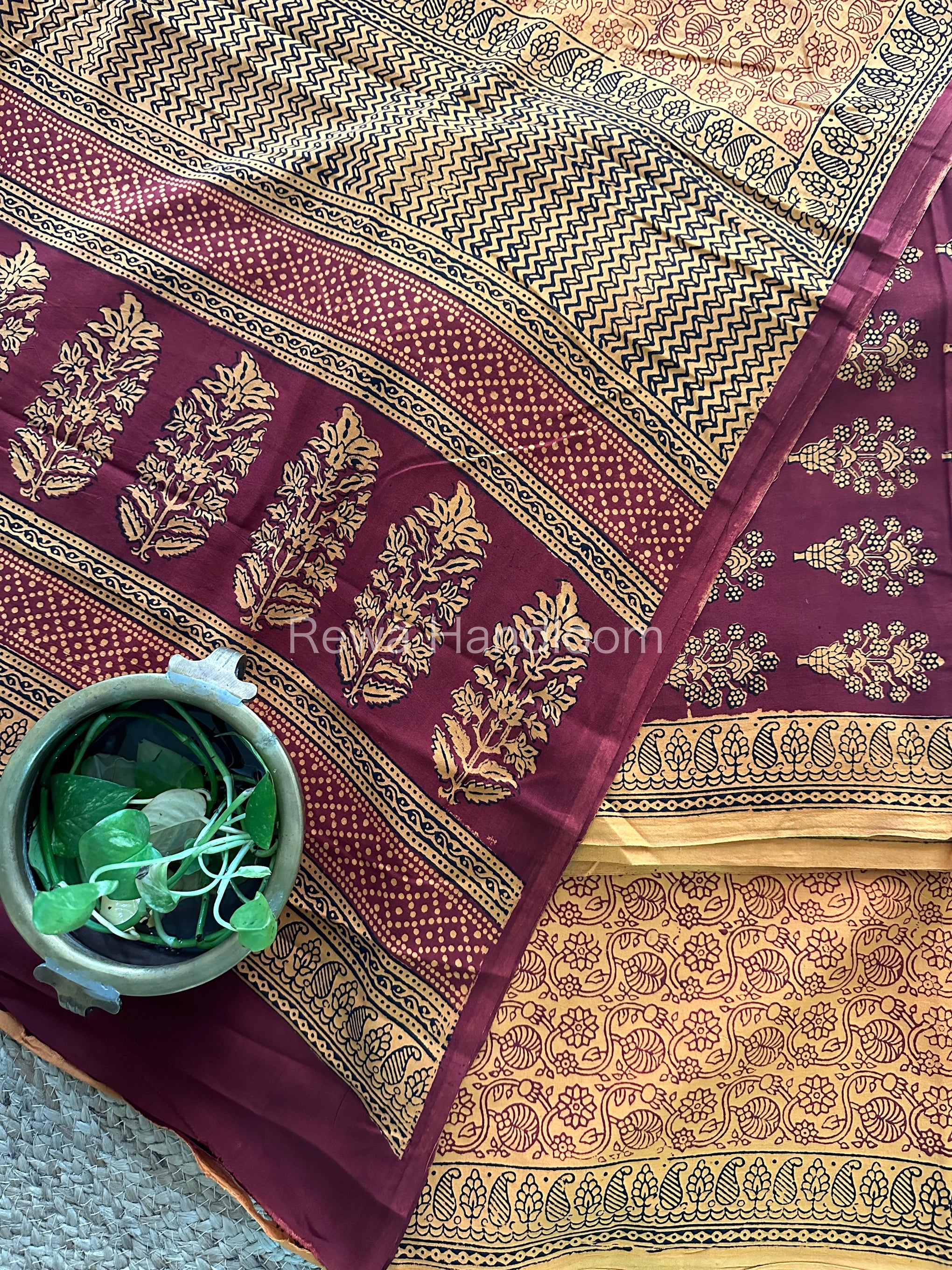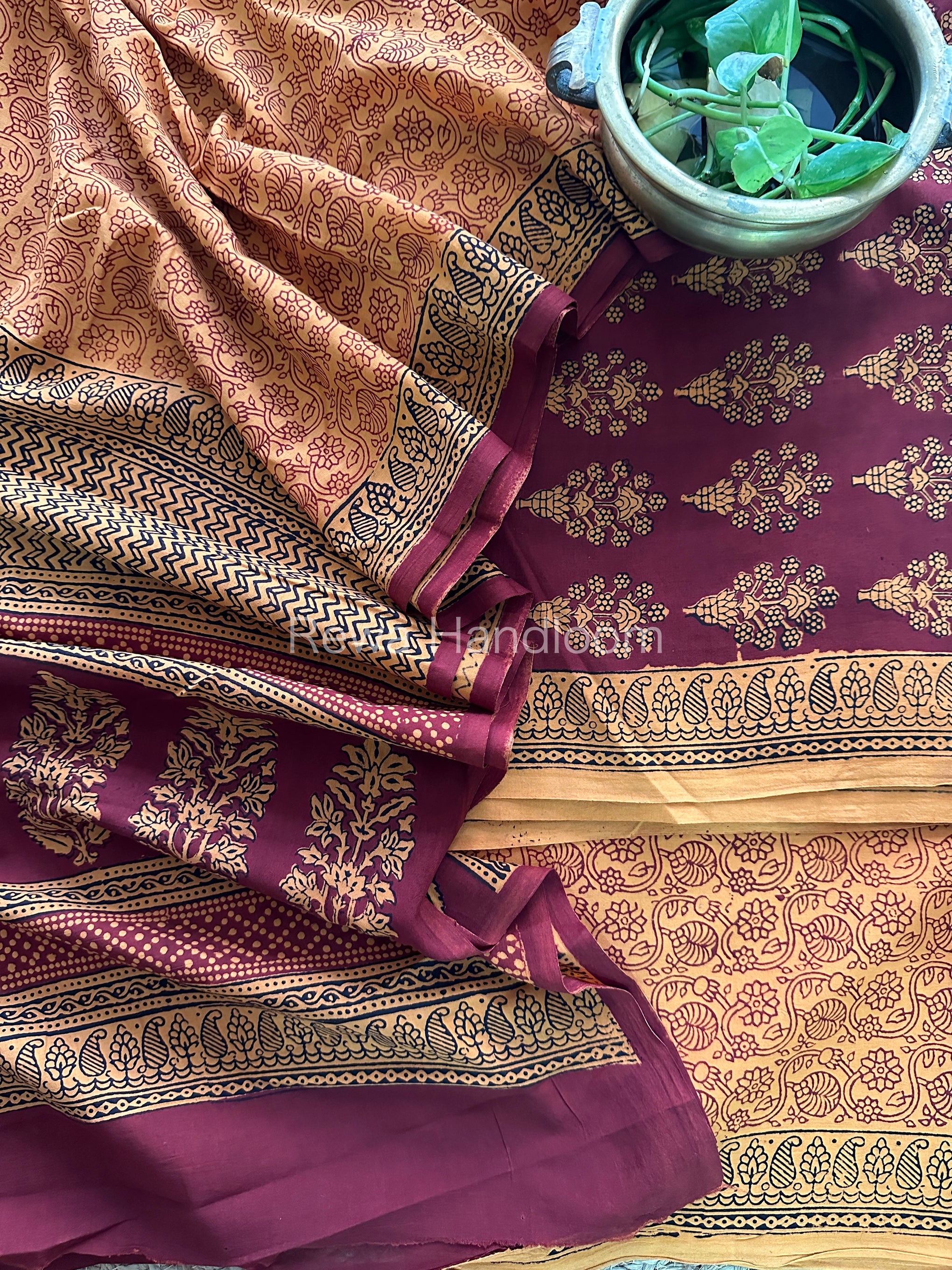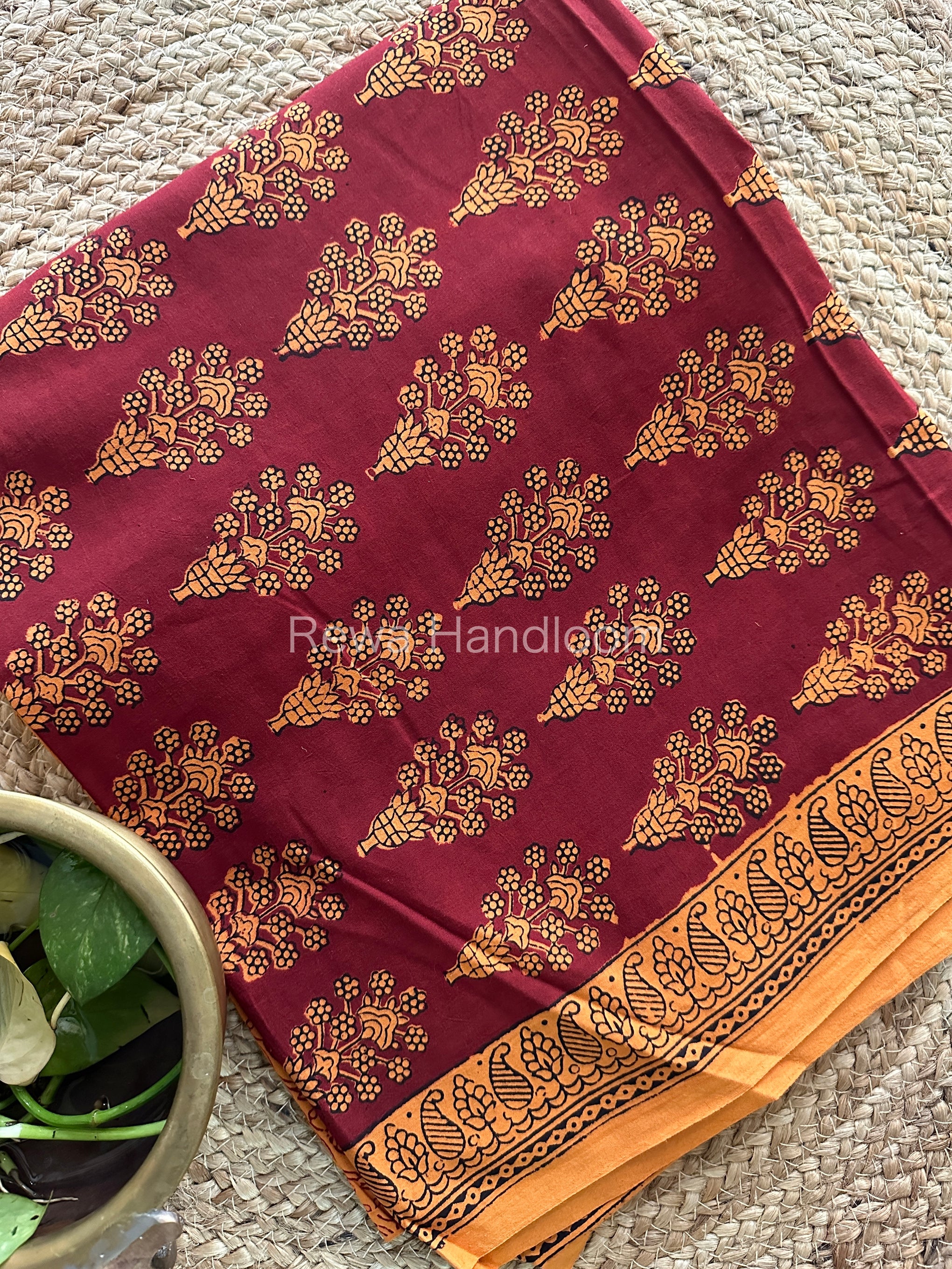 Maroon- Orange Bagh Print Cotton Suit-BCS106