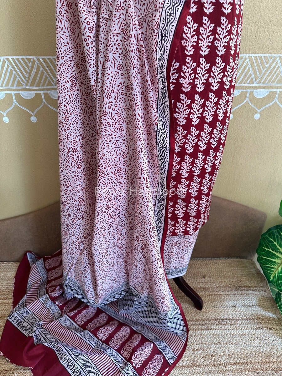 Maroon-White Bagh Print Cotton Suit BCSP0117