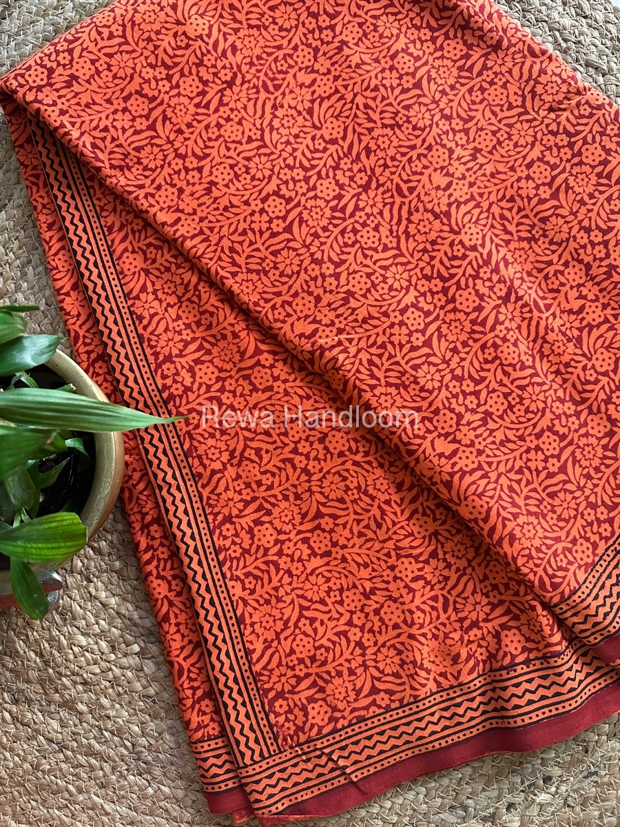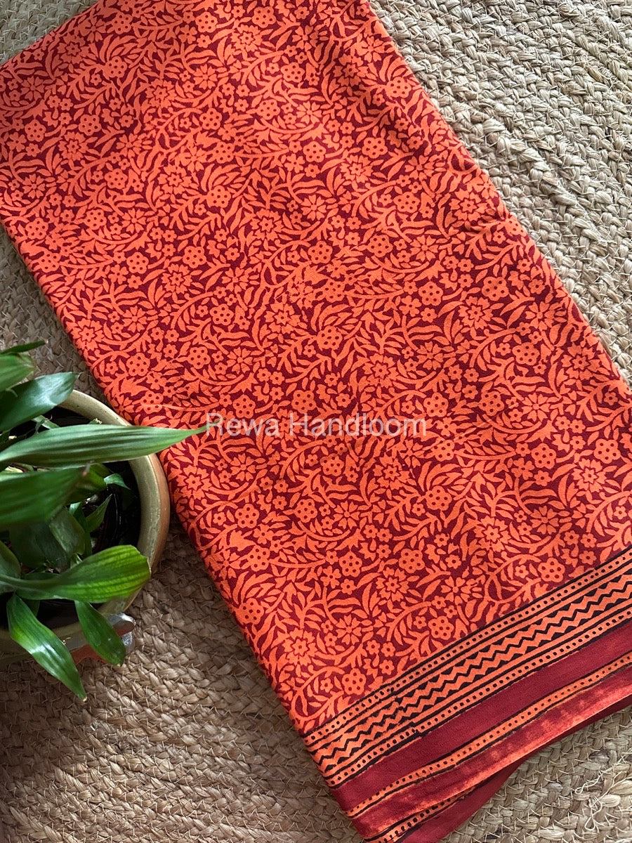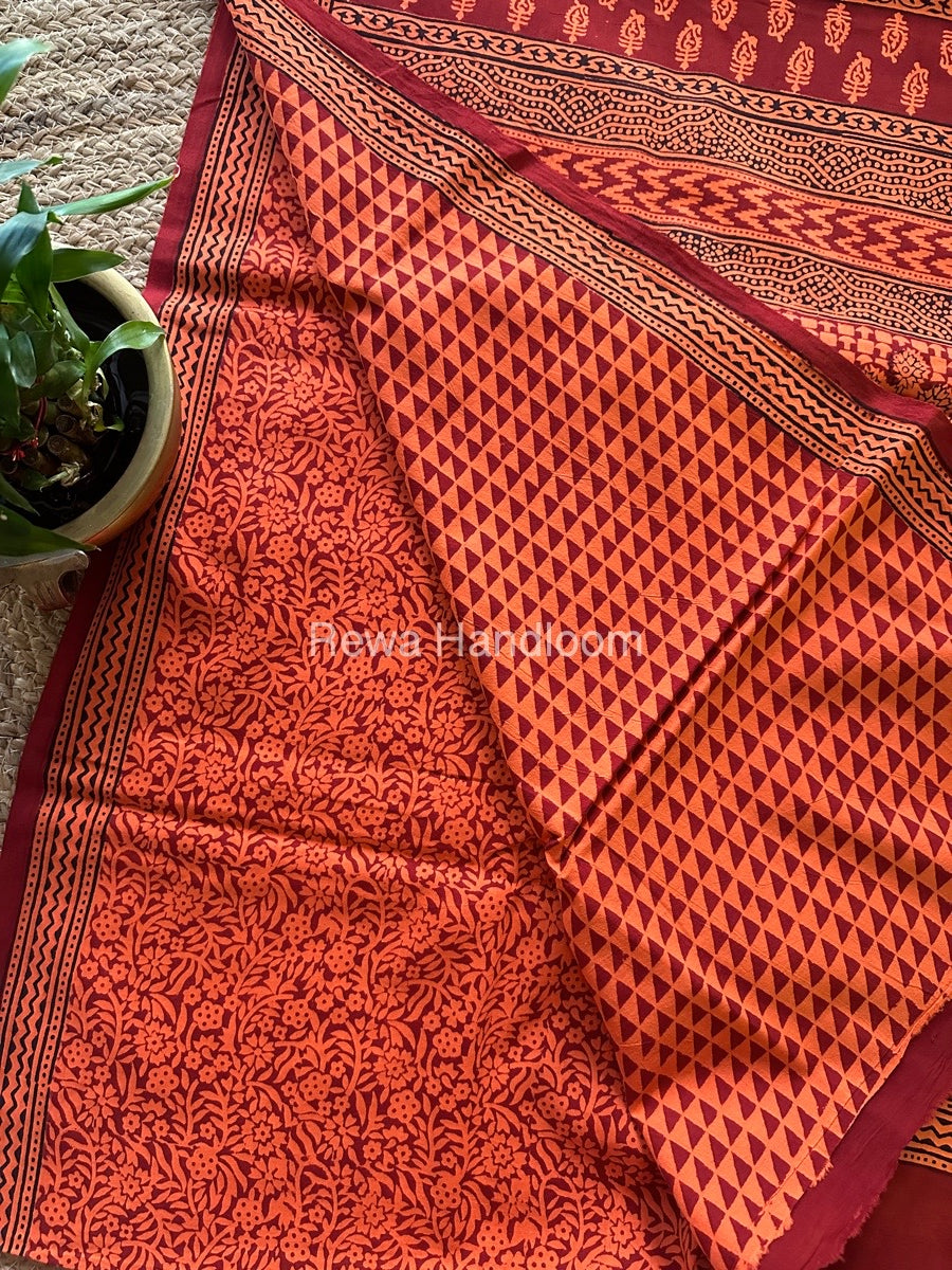 Orange Peach Bagh Print Cotton Saree NCBP13