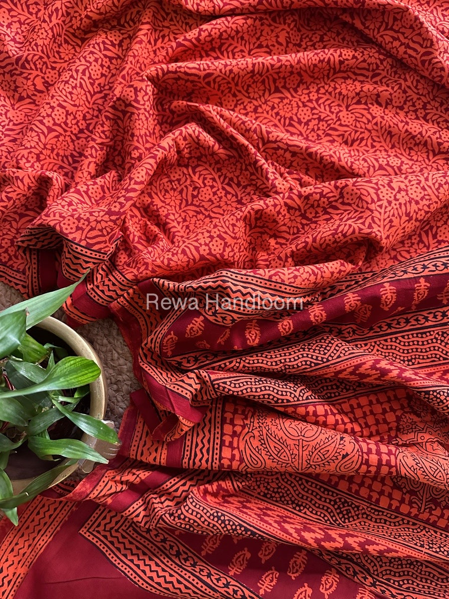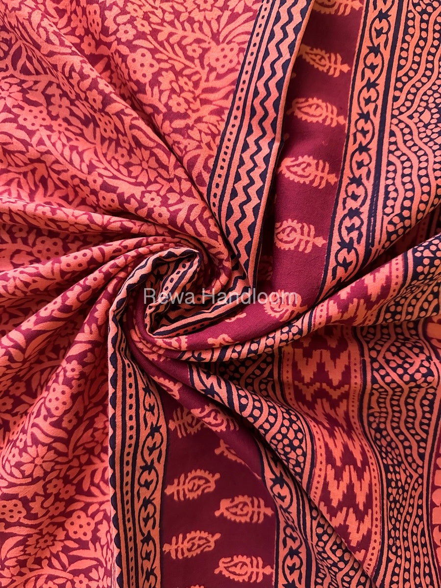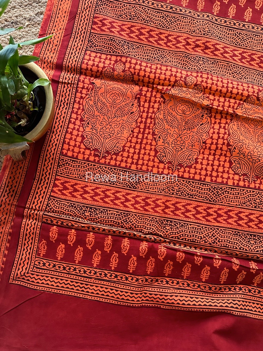 Orange Peach Bagh Print Cotton Saree NCBP13
